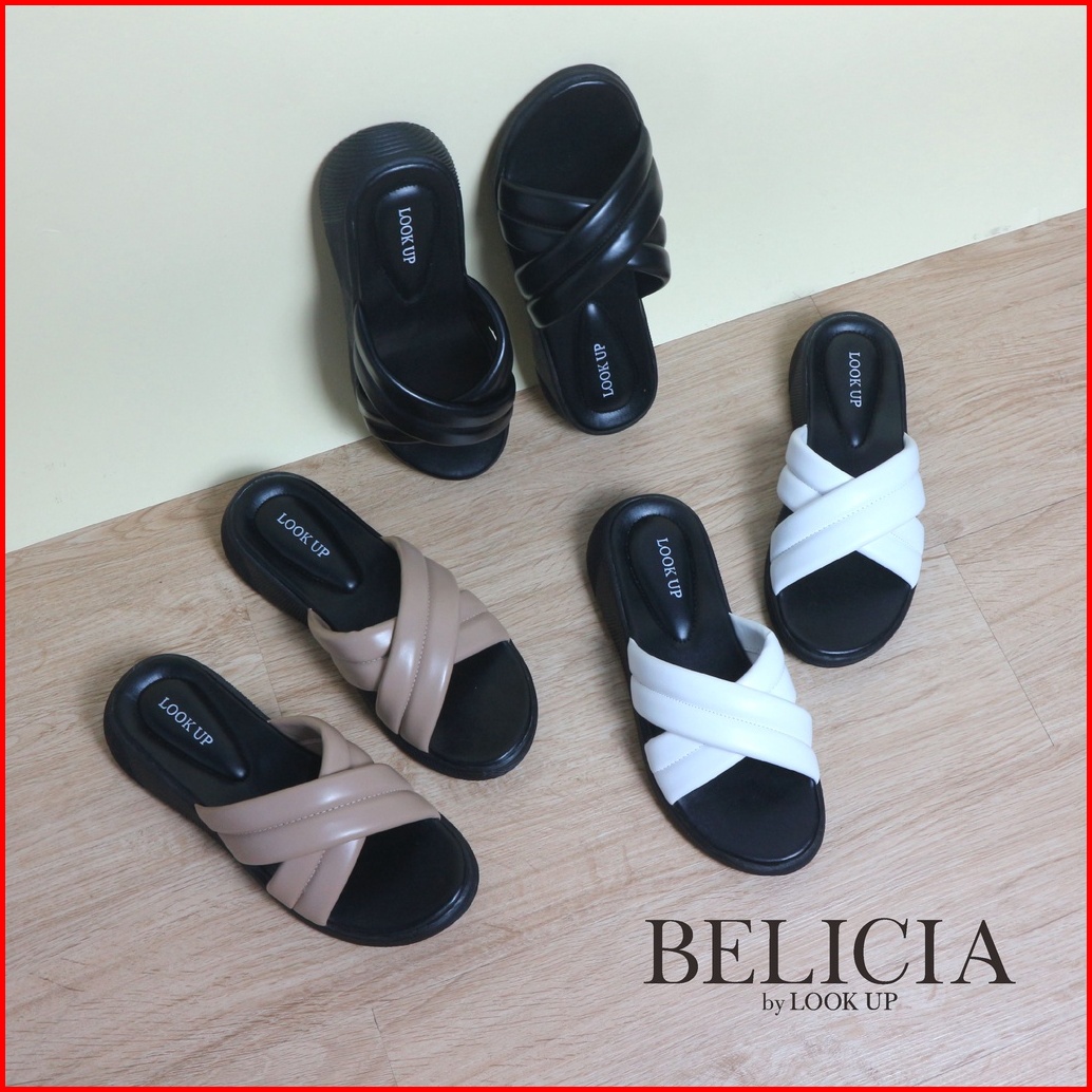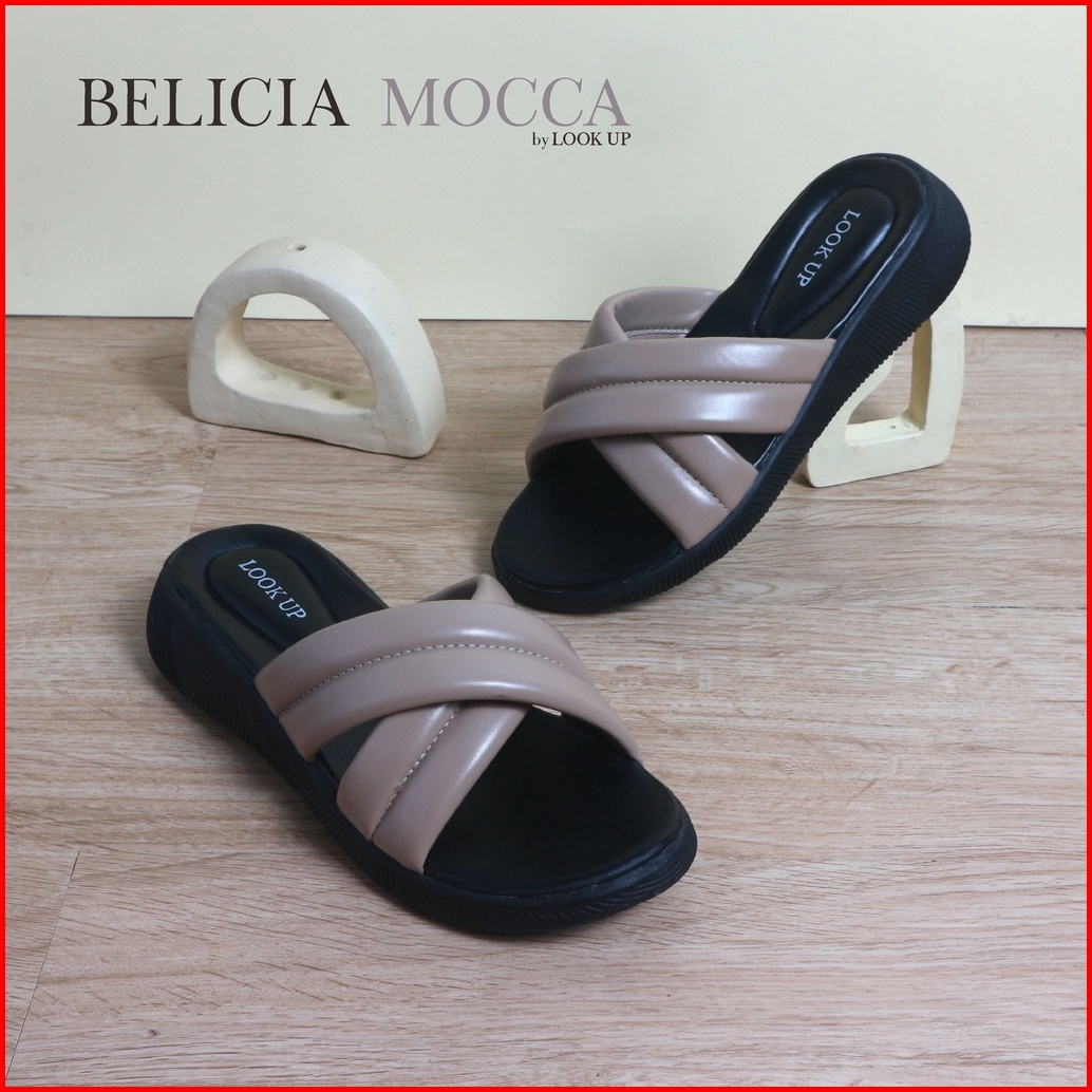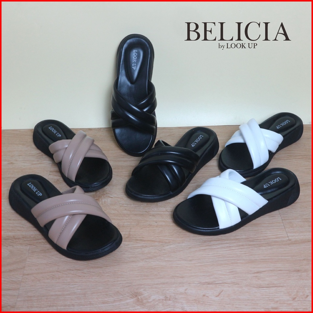 Belicia Look Up Wedges Sandal Wanita Model Silang Double Strap Flatform