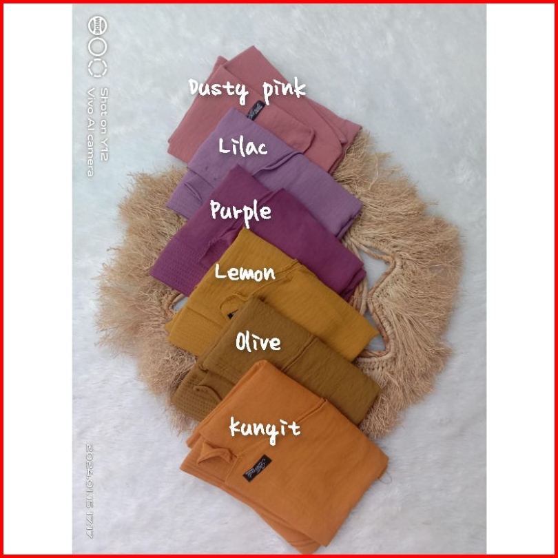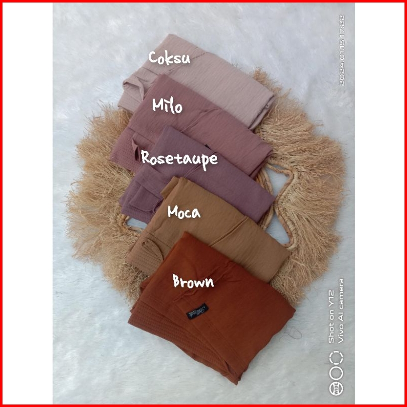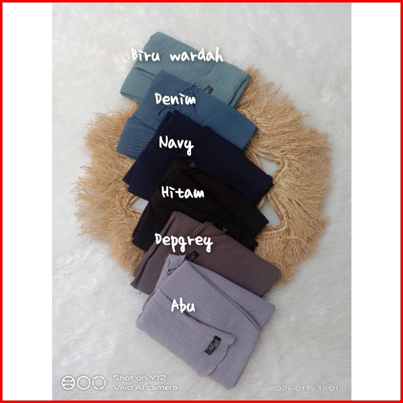 Hitam, Mocca, Blue jeans, Dusty Pink, Rosetaupe, Hijau Tua, Purple, Navy, Milo, Brown, Maroon, Coksu, Putih, Abu, Depgrey, Sage, Biru wardah, Jotol, Kunyit, Olive, Lilac, Putih bersih