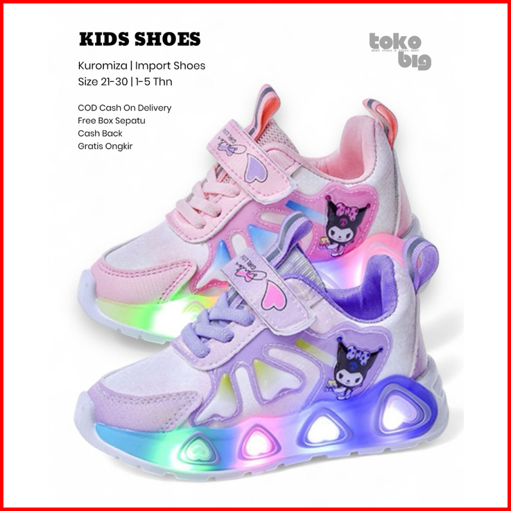 Tokobig Import Shoes Kuromiza Sepatu Led Anak Perempuan Sneakers Anak Perempuan Import Size 21-30 Usia 1-5 Thn Top Produ