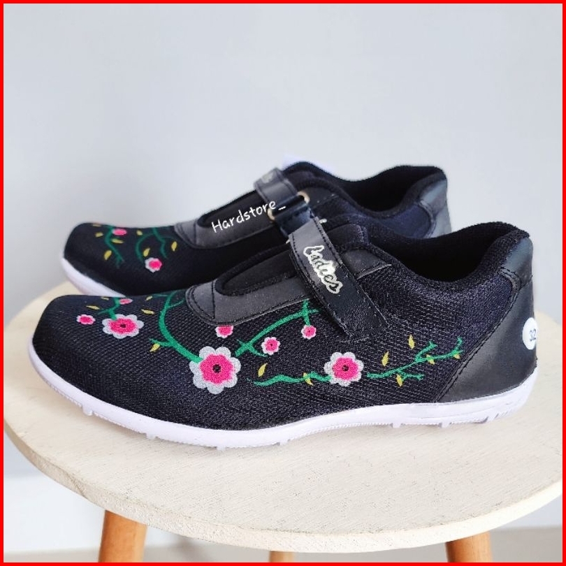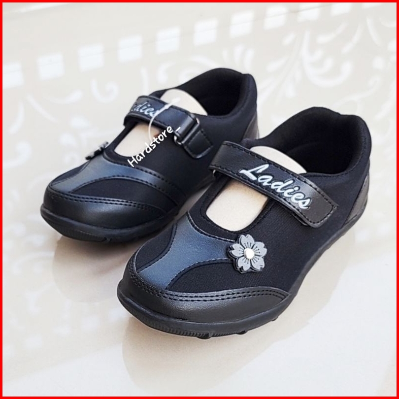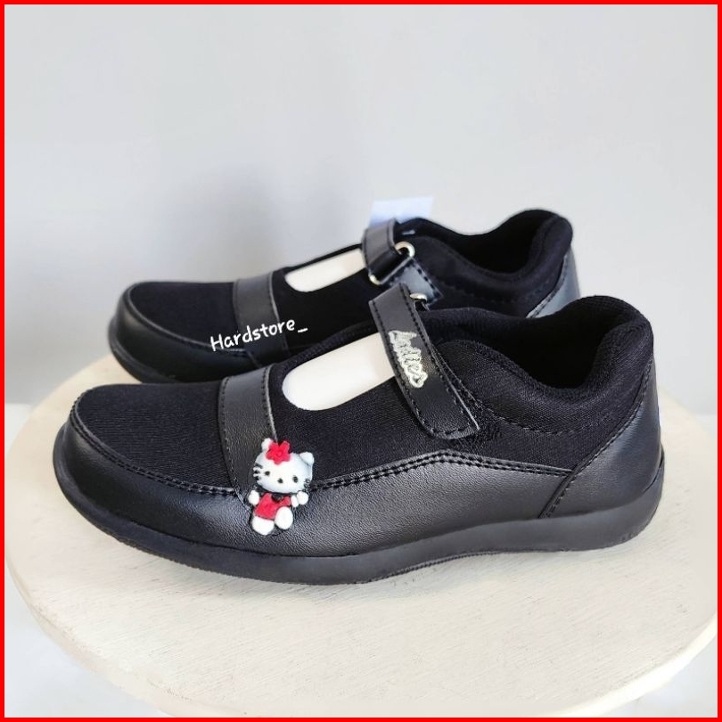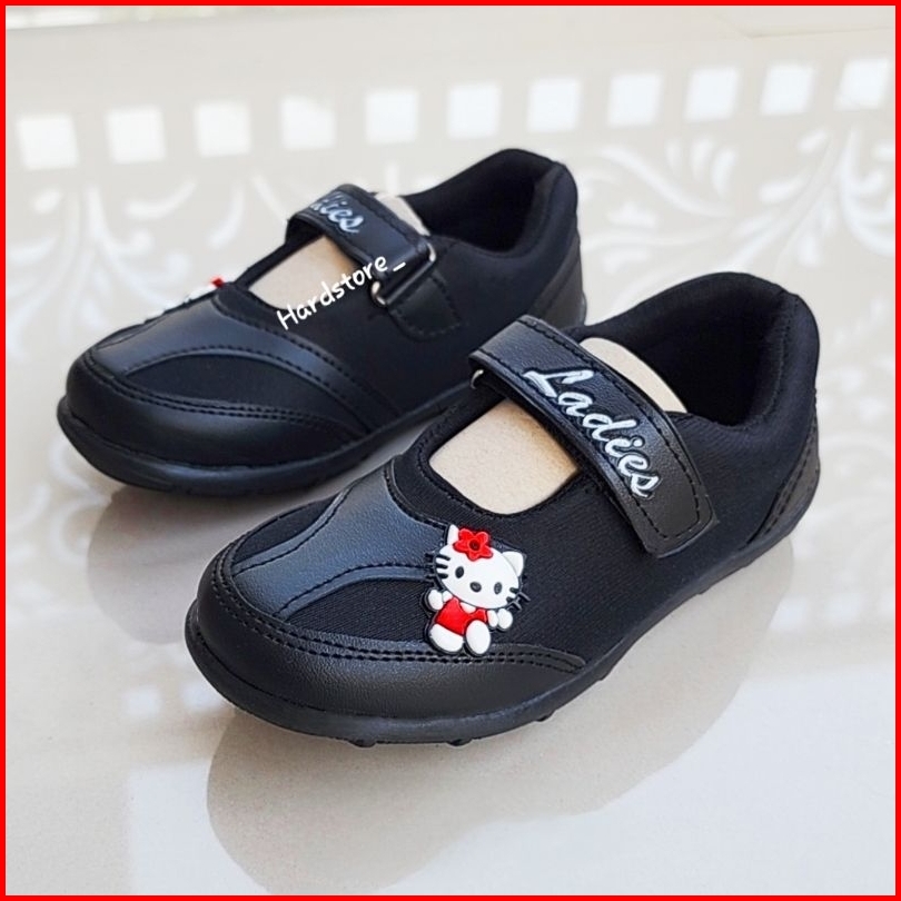 Sepatu Anak Perempuan Sekolah Sd Dan Tk Flat Shoes Sportty Wanita Cewek Hello Kitty Hitam 26-35