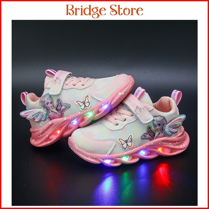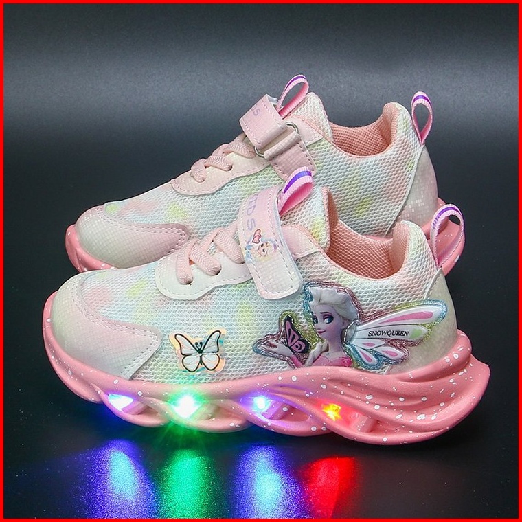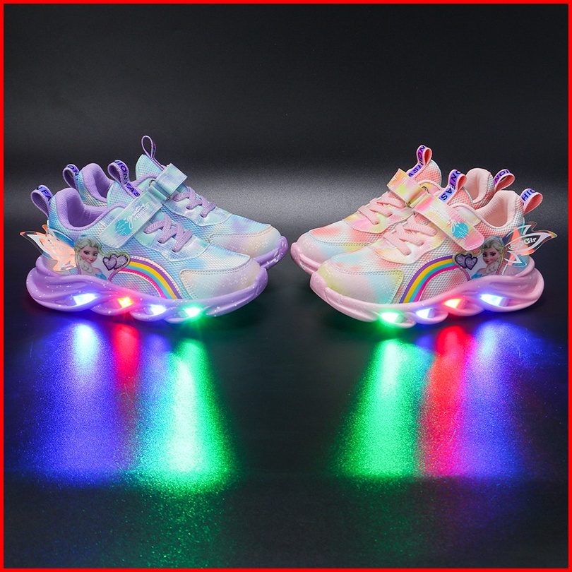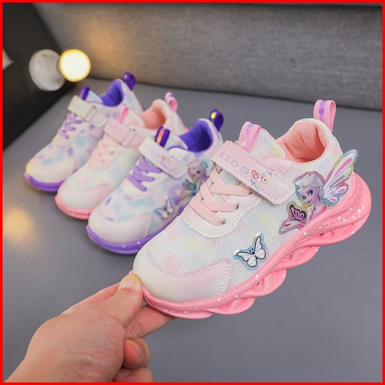 Bridgestore - Sepatu Sneakers Led Anak Perempuan Import Karakter Elsa 2022 Sepatu Sneakers Anak Frozen
