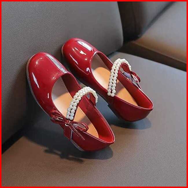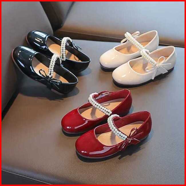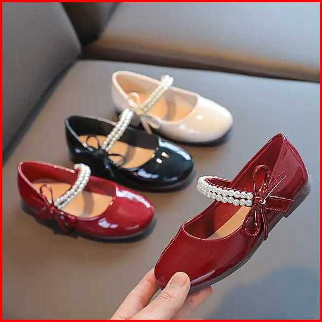 Sepatu Anak Perempuan Flatshoes Model Tali Mutiara Pita Mewah Sepatu Balet Anak Umur 1-10 Tahun Bahan Kilap