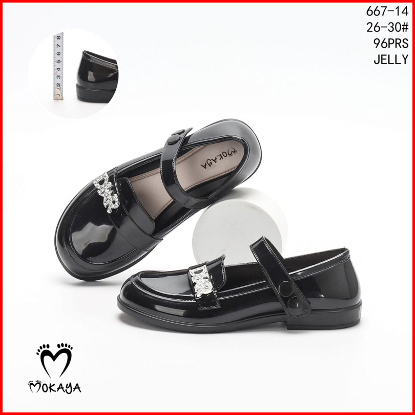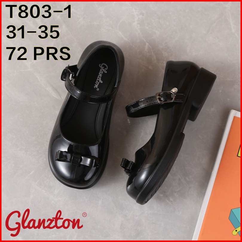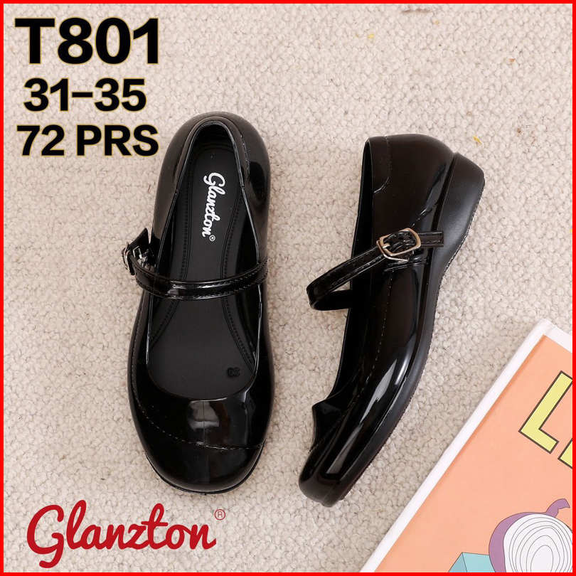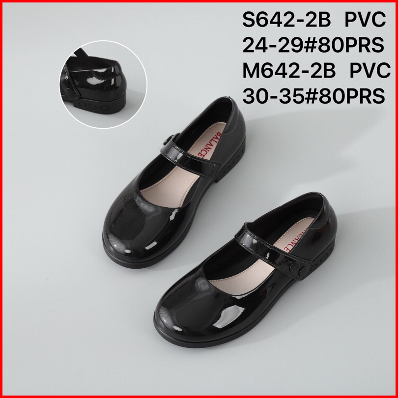 Sepatu Anak Hitam Polos Glossy Balance S642 Sekolah