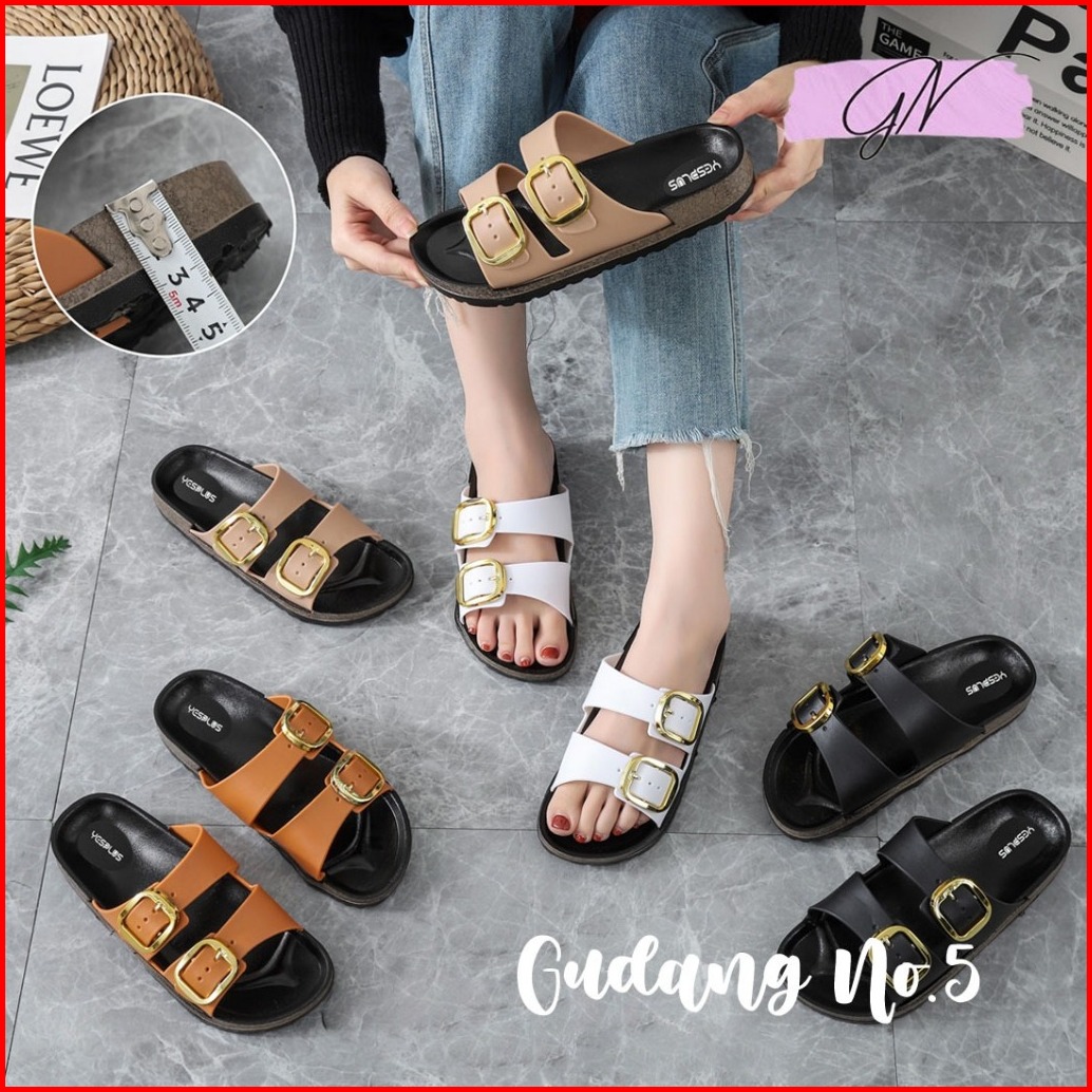 Gn-8051-1 Sandal Selop Tali Gesper Ban 2 Sandal Flat Jelly Wanita Antislip Import Pcu