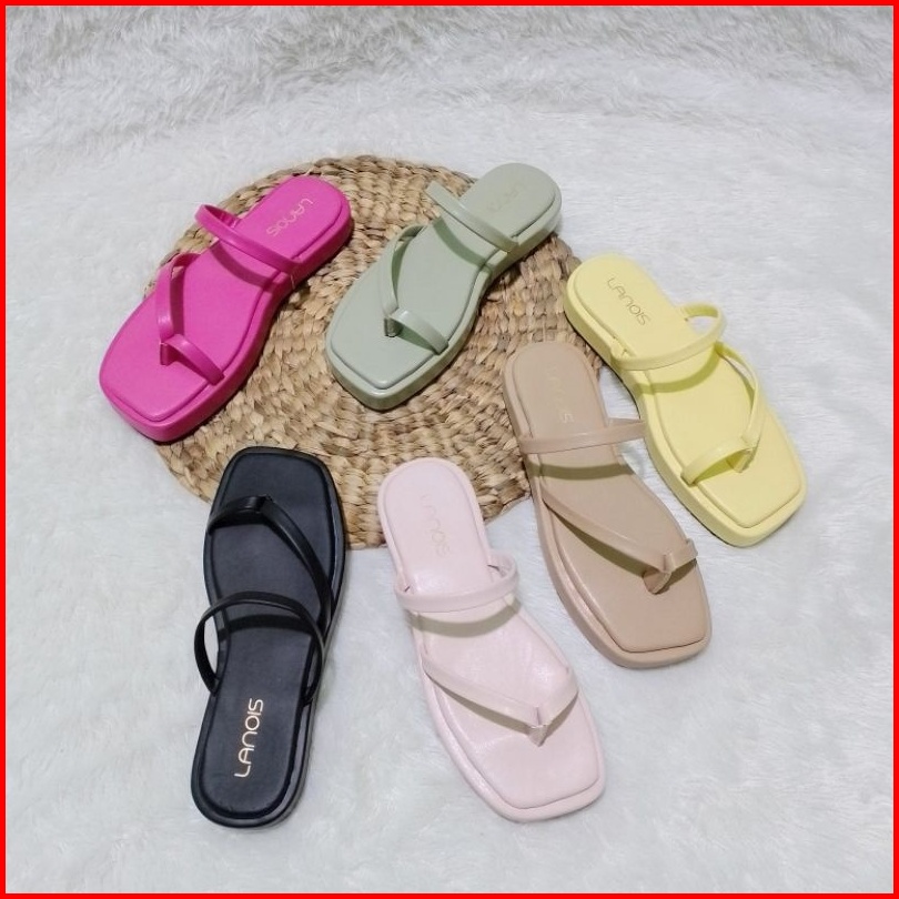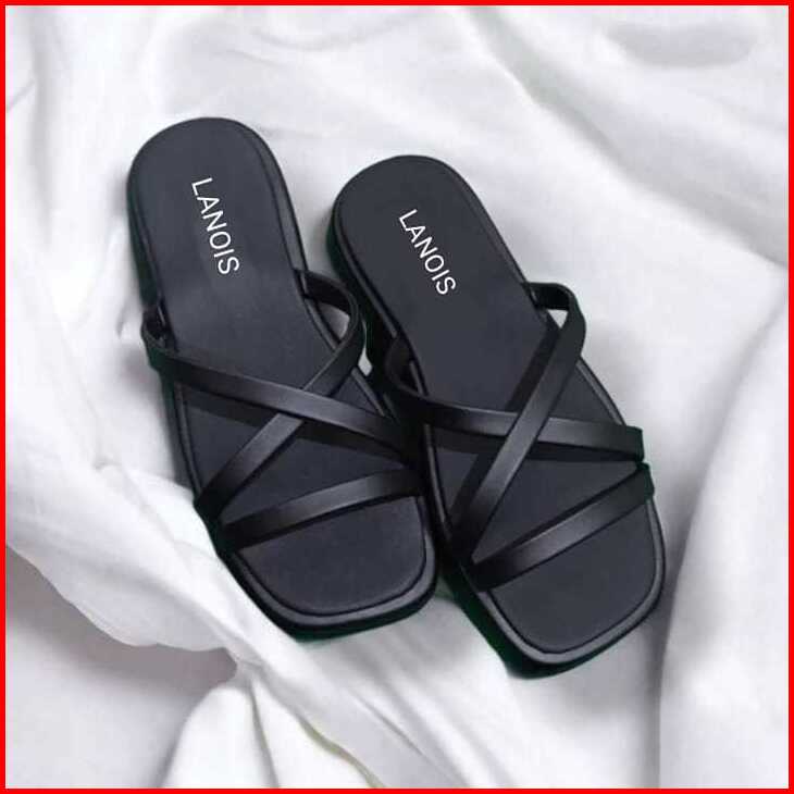 Lanois - Sandal Platform Spon Hitam Tali Strap 3 Cm