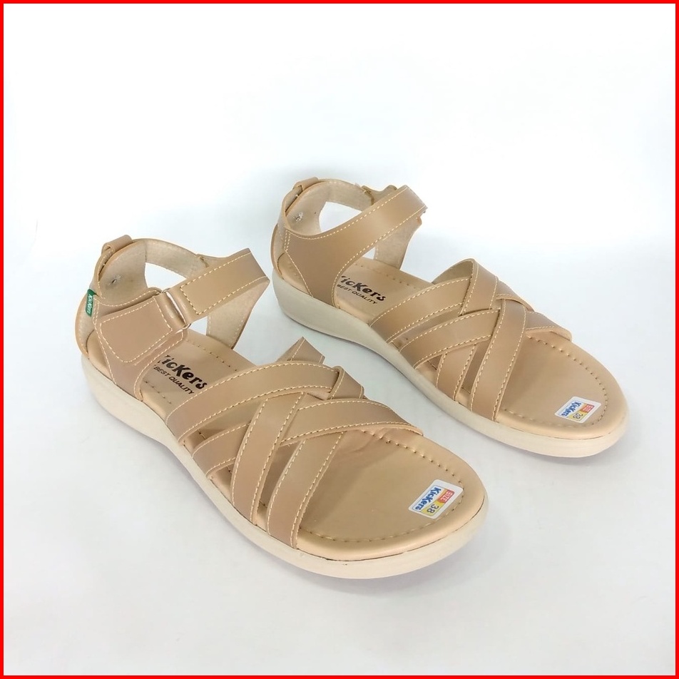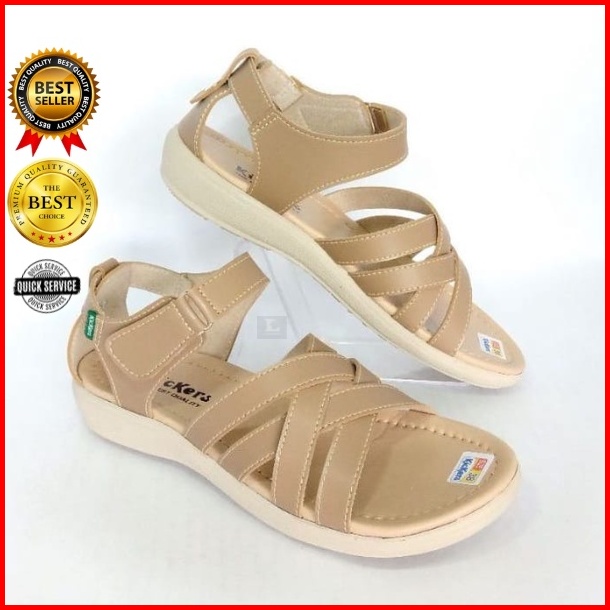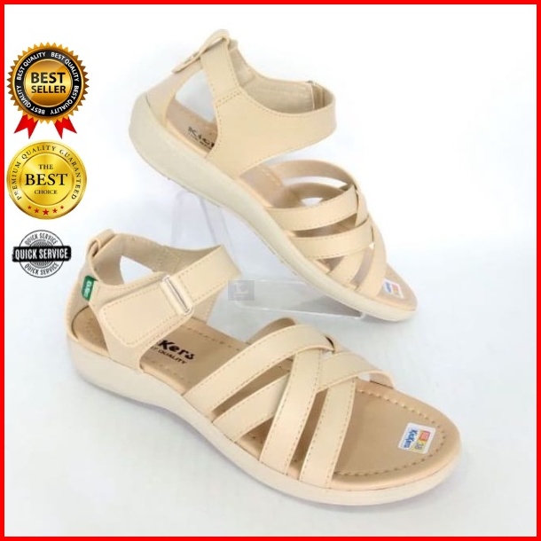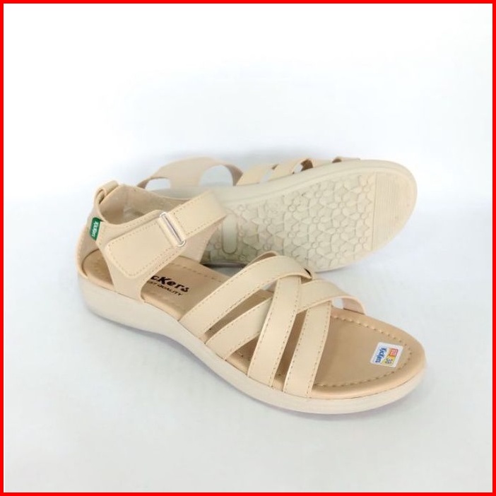 Sandal Sepatu Wanita Model Tali Silang Warna Krem