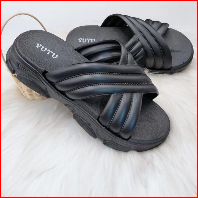 Sandal Selop Wanita Model Tali Silang Wedges Kekinian Tinggi 3 Cm 9102-7