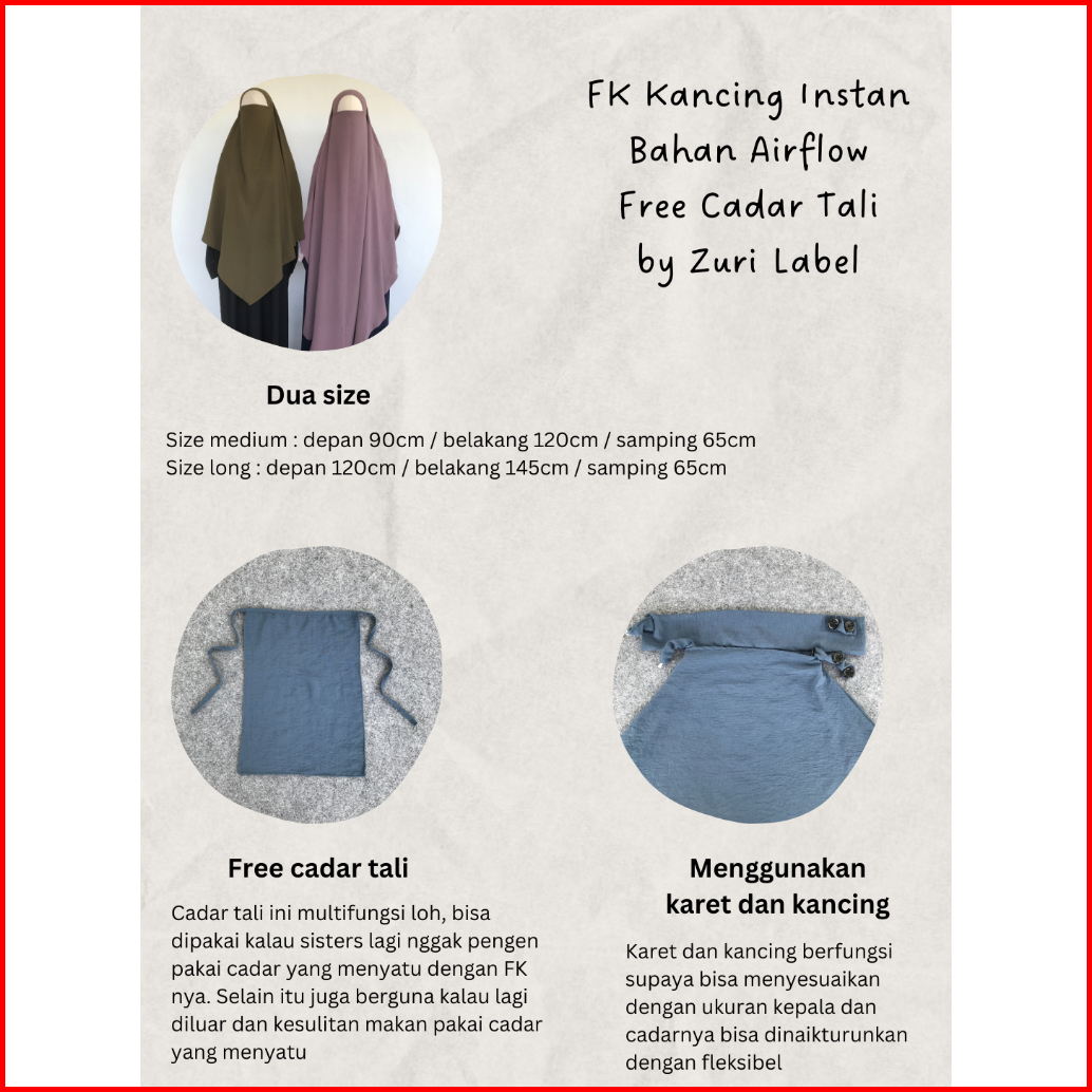 Fk Kancing Airflow - Free Cadar Tali French Khimar By Zuri Label - Kerudung Jilbab Syari
