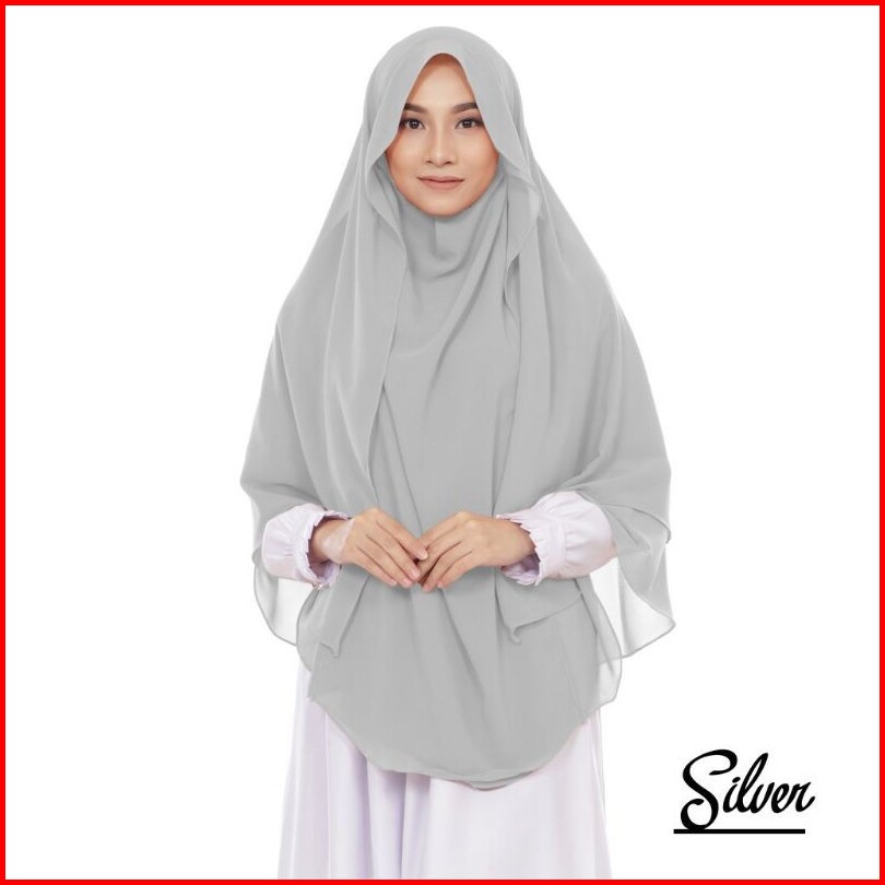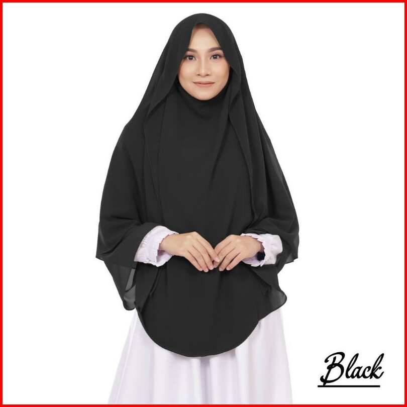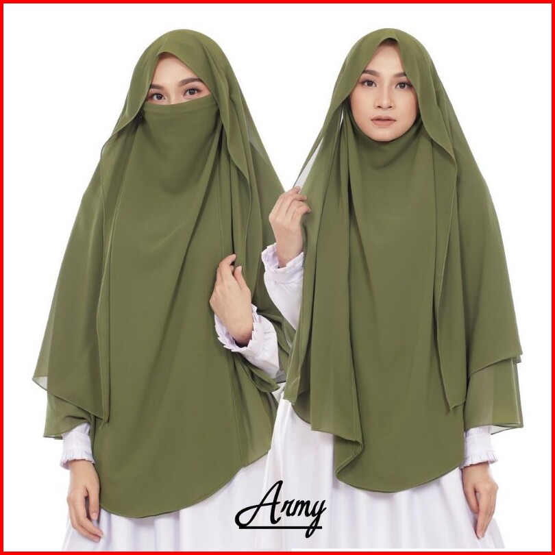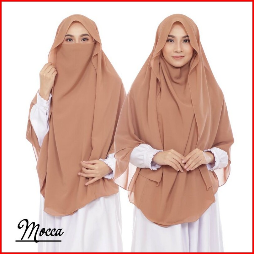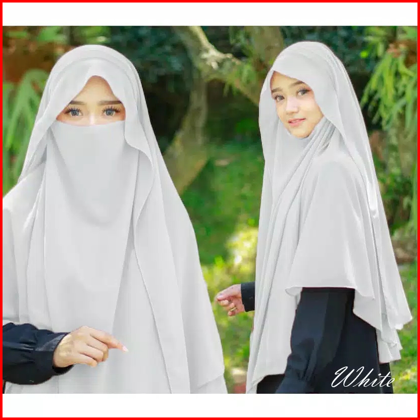 Jilbab Khimar Syari Jumbo Ceruty 2 Layer Hijab Non Pet Dengan Cadar Lepas Pasang Tali