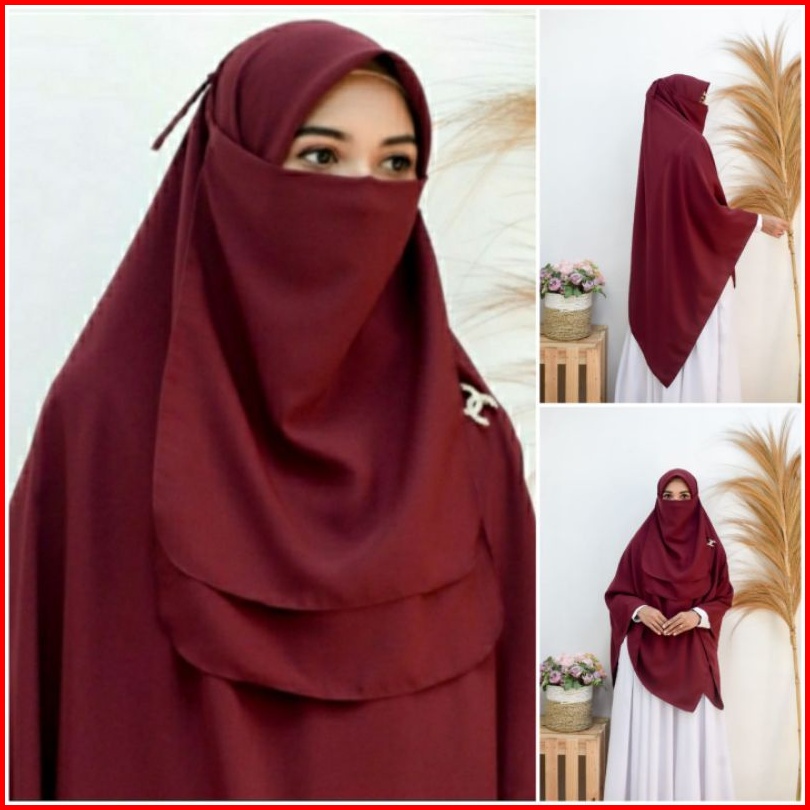 Hijab Segi Empat Jumbo Hijab Syar I 150 X 150cm Plus Cadar Dua Layer Hijab Wolfis Premium Jilbab Syari Kerudung Segi Emp