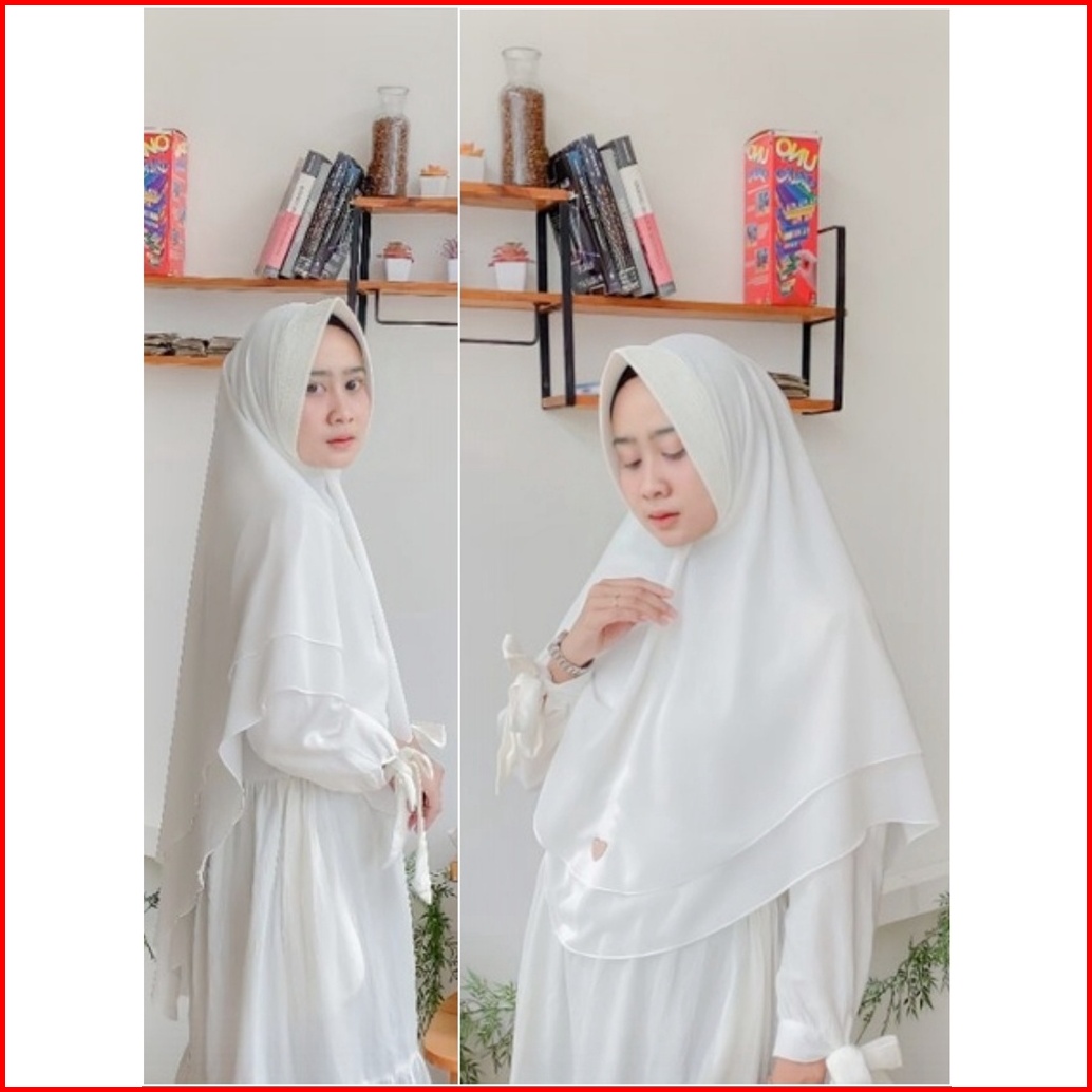Hijab Jilbab Kerudung Khimar Sar I Jumbo Putih Ped Busa Antem Mat Ceruti Babydoll I Oval