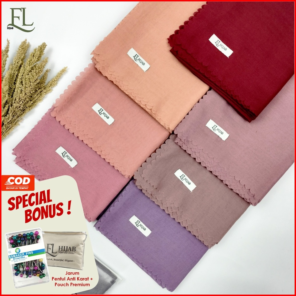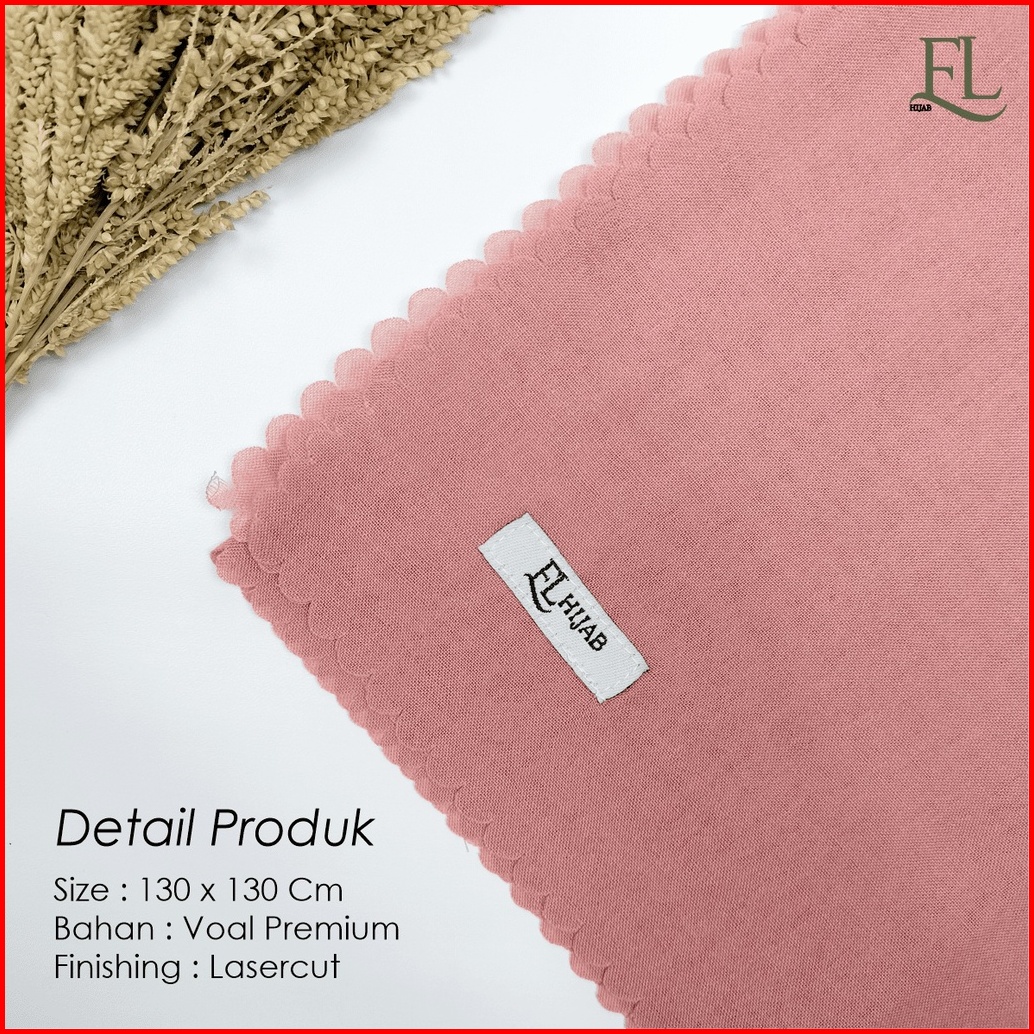El Hijab Jilbab Segiempat Polos Voal Premium Syari Jumbo Lasercut Size 130x130 Free Pouch Milo Salem