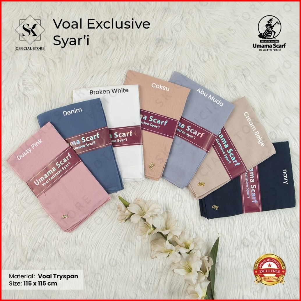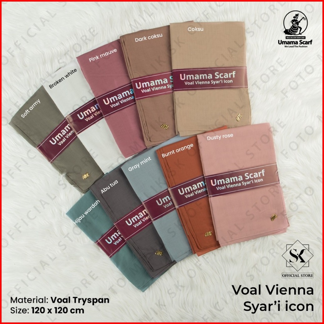 Jilbab Umama Scarf Voal Vienna Syari Metal Logo Jahit 120 X120 Cm Dan 115x115 Cm