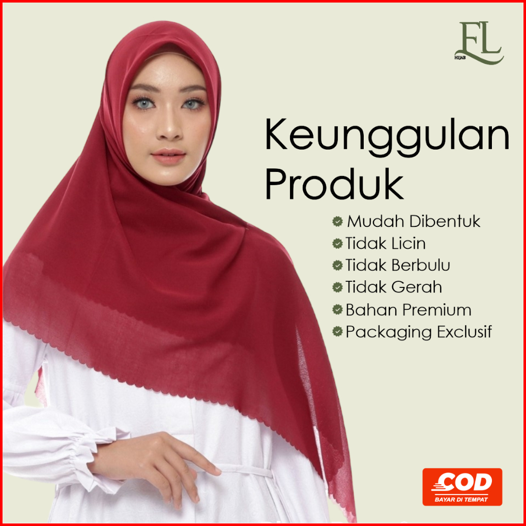 Kerudung Segi Empat Polos Voal Premium Syari Jumbo Lasercut Size 130x130 Cm