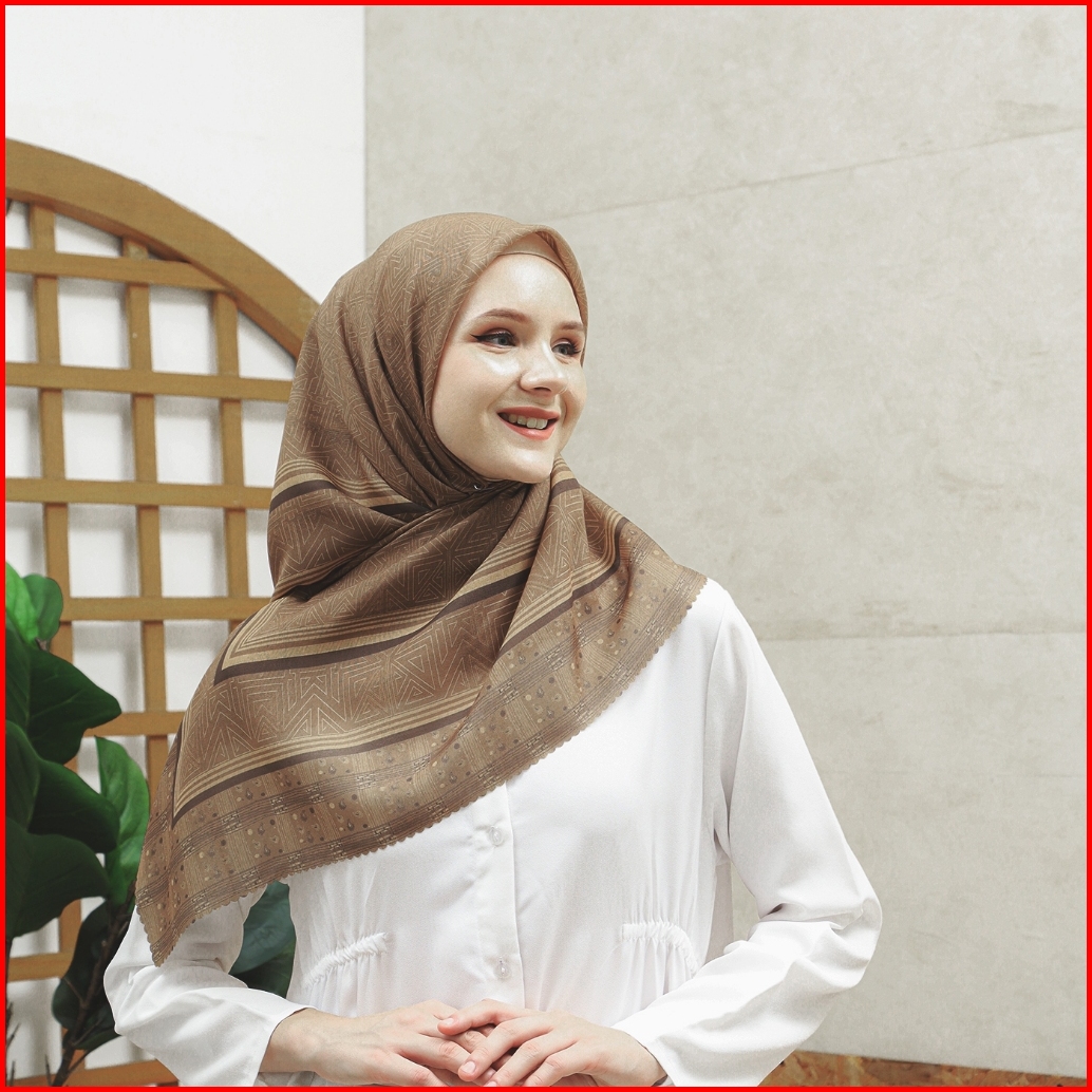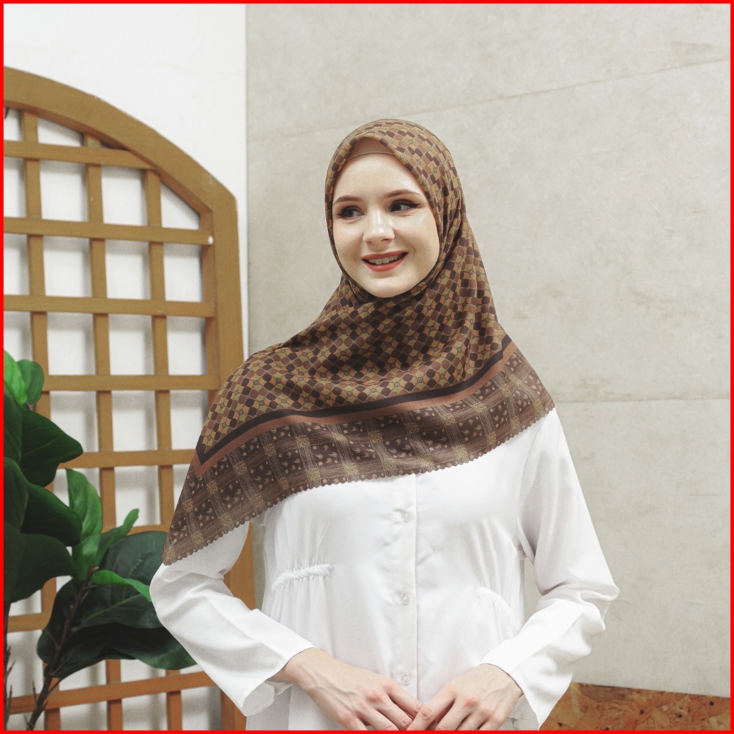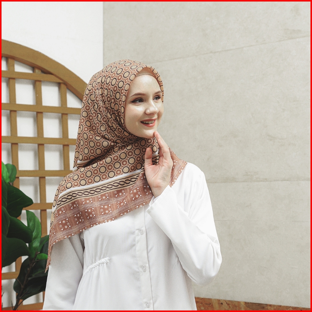 Hijab Syari 130x130 I Kerudung Segi Empat I Jilbab Moamo Scarf Ethnic Brown Series