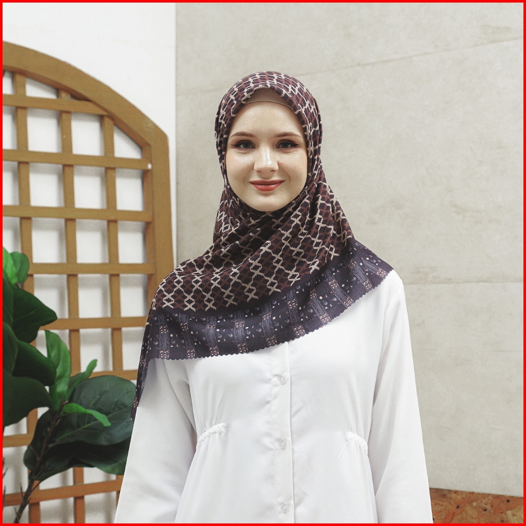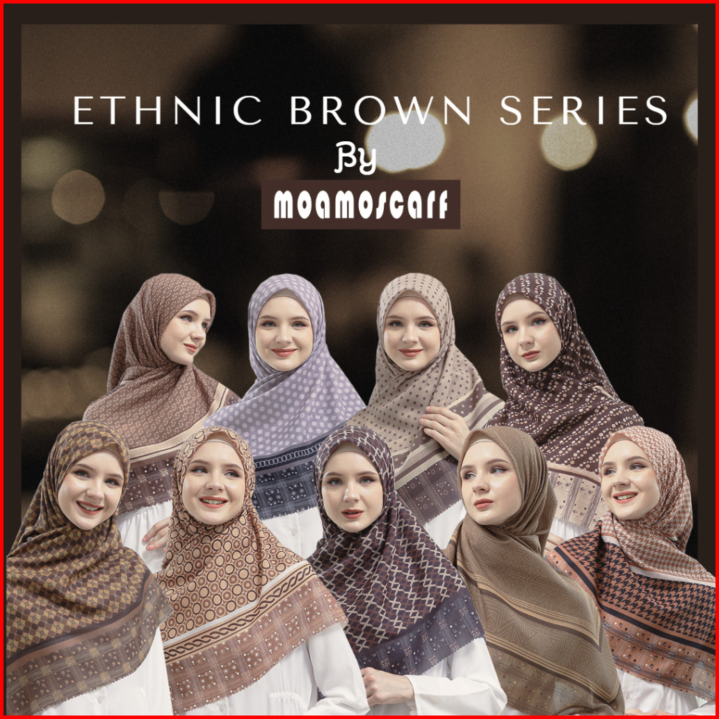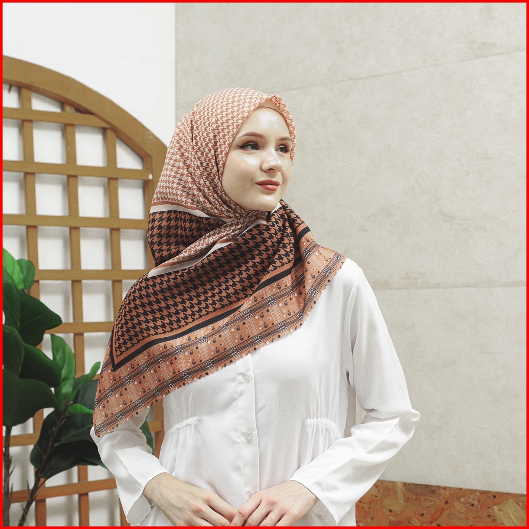 Hijab Syari 130x130 I Kerudung Segi Empat I Jilbab Moamo Scarf Ethnic Brown Series