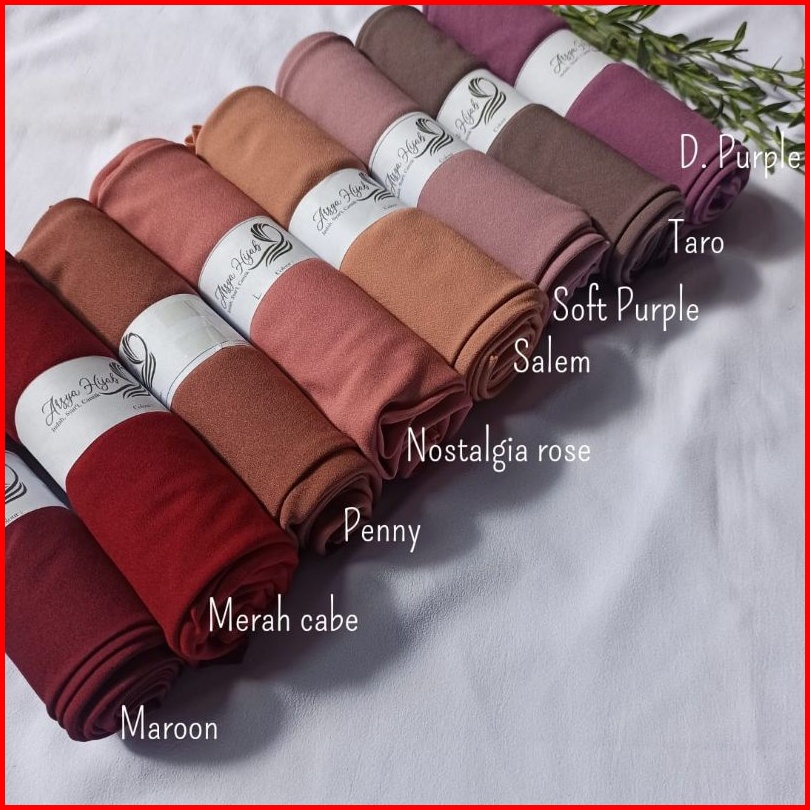 Dusty Purple, Taro, Soft Purple, Salem, Nostalgia Rose, Penny, Merah Cabe, Maroon, Tan, Lime, Mocca, Cinnamond, Walnut, Fanta, Broken White, White, Silver, Grey, Denim, Navy, Khaki PNS, Ijo Wardah, Olive, Dark army, Botol, Nutella, Merah, Coksu, Caramel, Soft Milo, Khaki, Pramuka/dark choco, Mullbery, Terasi, Matcha, Hitam, Sage Green, Dark Grey, Mustard, Pink Peach, Plum, Blue sky, Bata, Lavender, Cream, Dusty Pink, Hijau Tua, Lilac, Latte