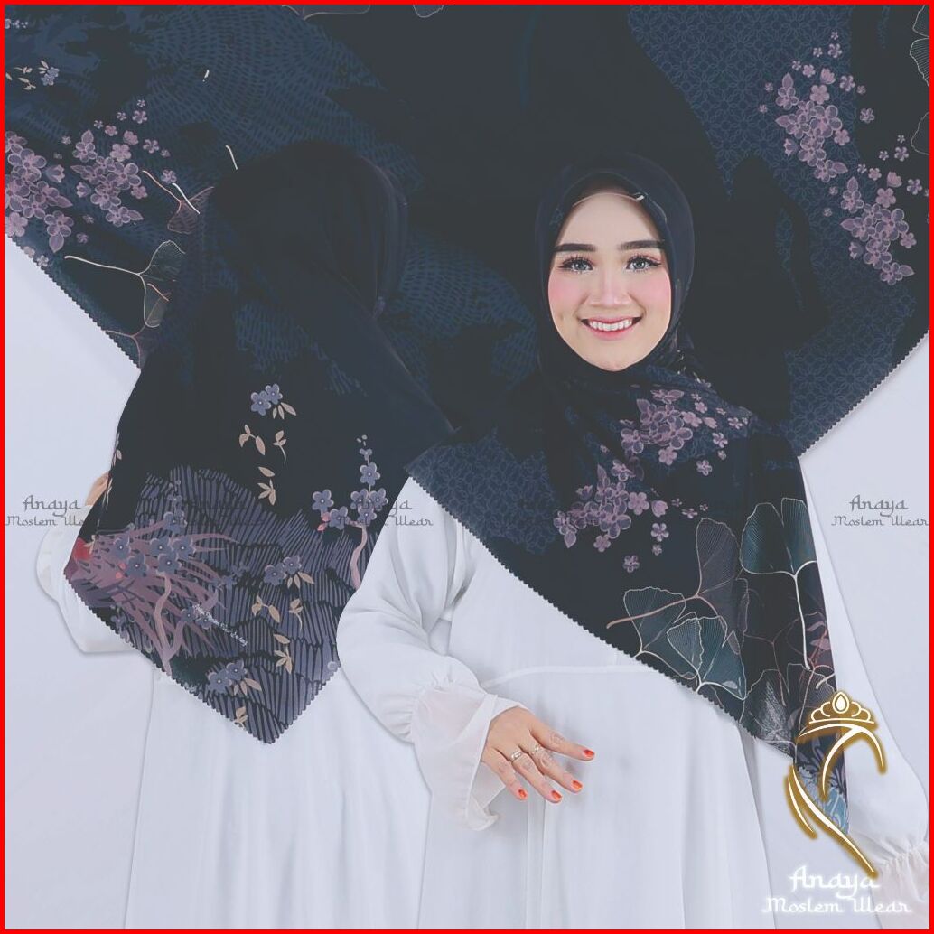 Anaya 15 -jilbab Segi Empat Motif Syar I 130x130 Dan 115x115cm Voal Sublime Premium Hitam-k-55