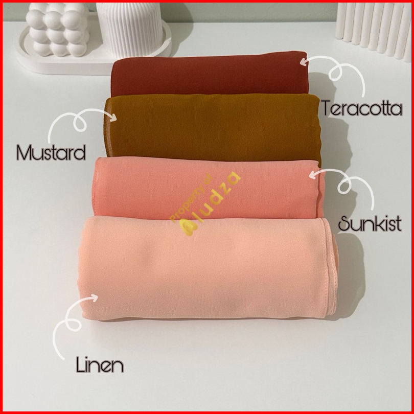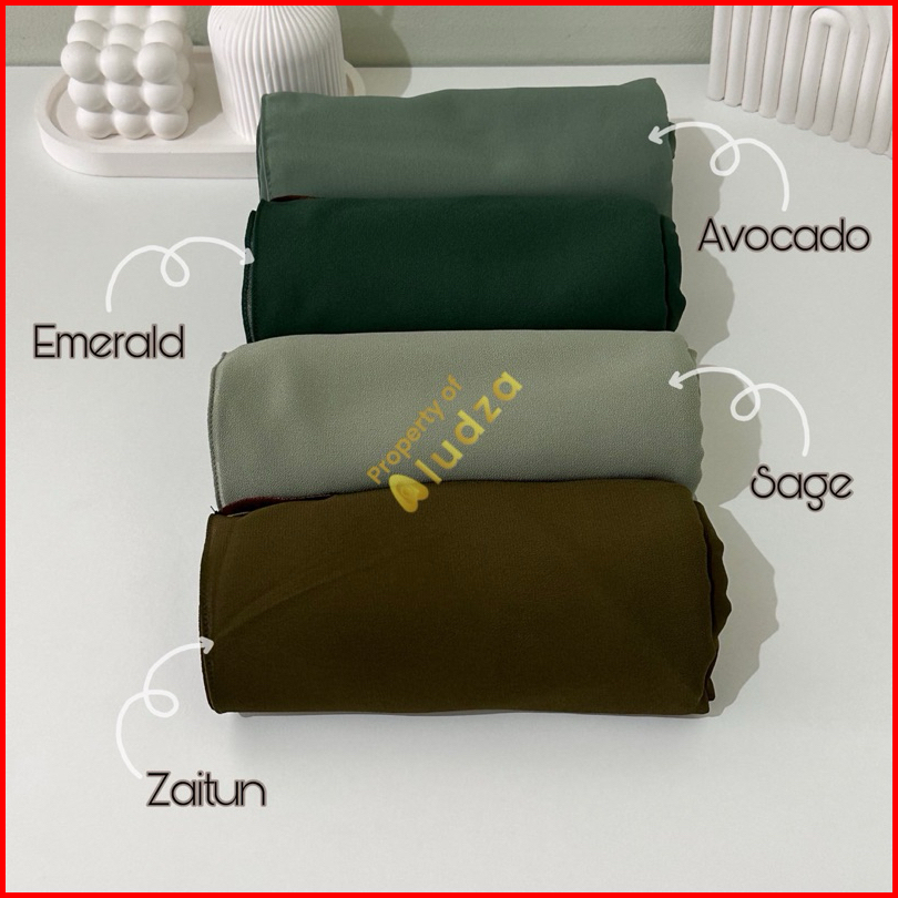 Hitam, Navy, Broken White, Creamy, Burgundy, Merah Ati, Maroon, Rose, Blush, Rose Gold, Khaki, Taupe, Milo, Dark Milo, Mocca, Rosybrown, Silver, Flint, Denim, Blue Jeans, Avocado, Sage, Emerald, Zaitun, Teracotta, Mustard, Sunkist, Linen
