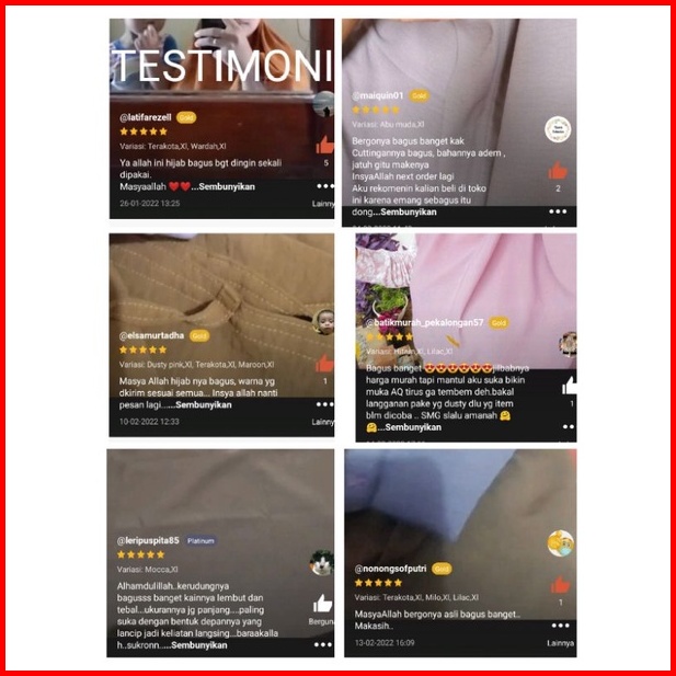 Hitam, Abu tua, Wardah, Biru muda, Maroon, Army, Silver, Cream, 10 pc, Biru denim, Kuning mustard, Navy, Coklat, Dusty rose, Ungu, Terakota, Abu, Dusty pink, Coksu, Hijau mint, Milo, Coklat muda, Mocca, Ungu muda, Greentea, olive