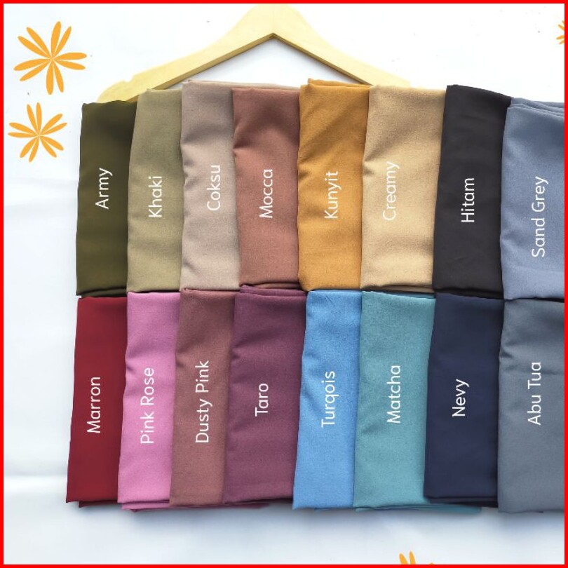 Hitam, Marron, Hijau Tua, Khaki, Coksu, Dusty Pink, Nevy, Matcha, Mocca, Pink rose, Kunyit, Taro, Capucino, Abu Tua, Sand grey, Putih Broken White