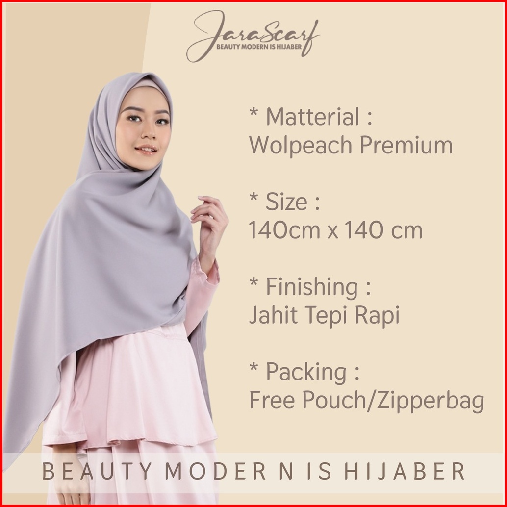 Jilbab Syar I Segi Empat Wolfis Premium Jara Scarf
