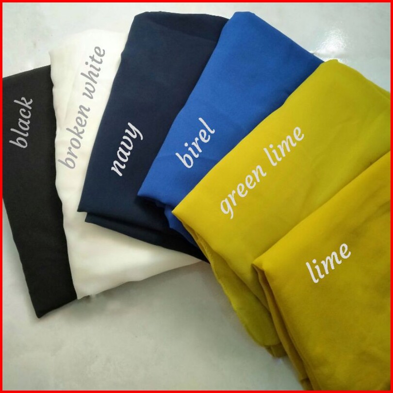 Kunyit/mustard, Birel, Navy, Hijau botol, Putih tulang, Lime, Dusty, Maroon, Merah bata, Hitam, Hijau Tua, Lavender, Coksu, Wardah, Milo, Warna lain, Moca, Abu Tua, Gray, Tosca, Putih bersih