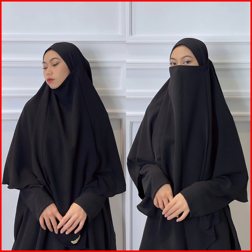 Jilbab Hijab Umroh Haji Bergo French Khimar Niqab Crinkle Bonus Cadar Fk