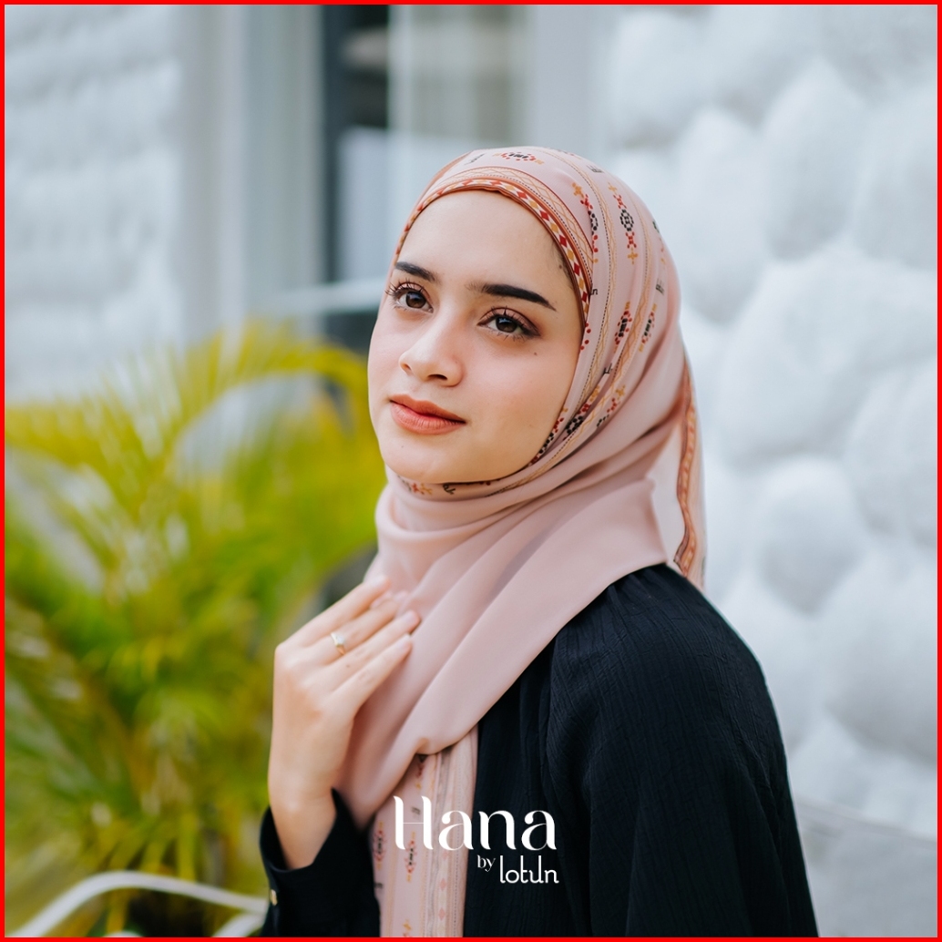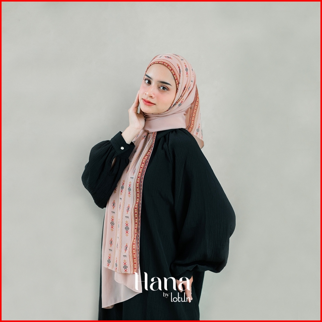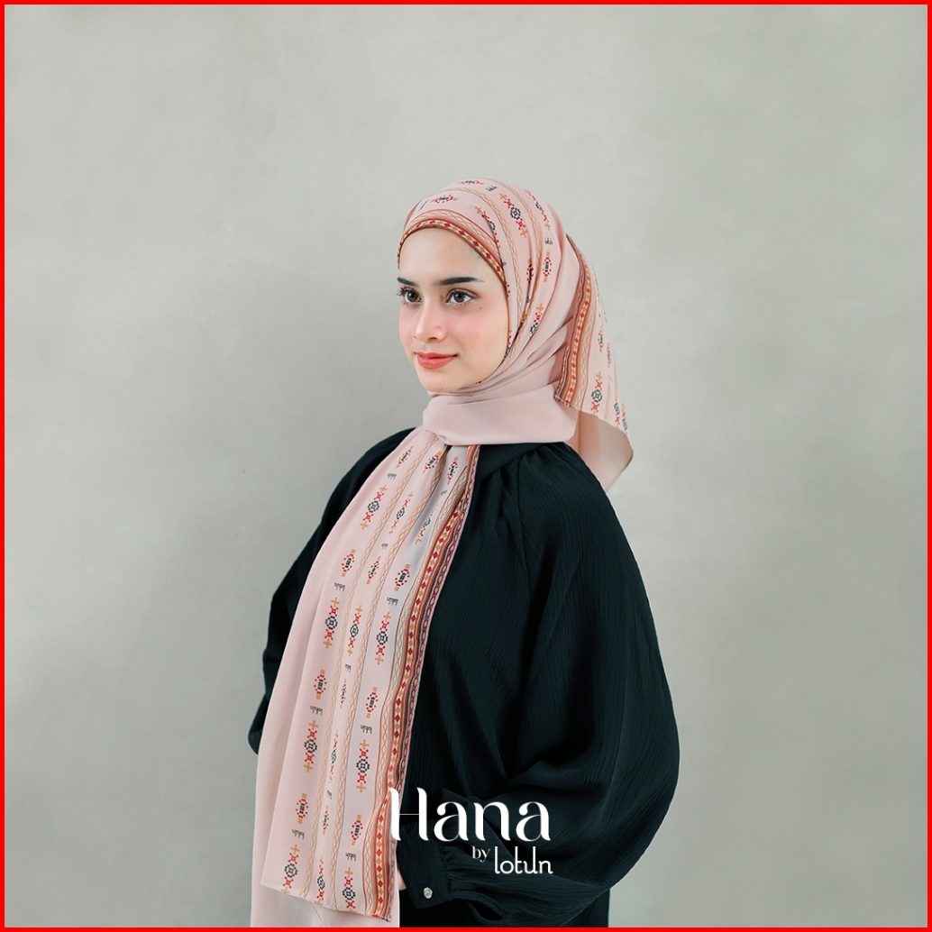 Lotun Hana Series - Hijab Pashmina Printing Motif Etnik Material Premium - Peach