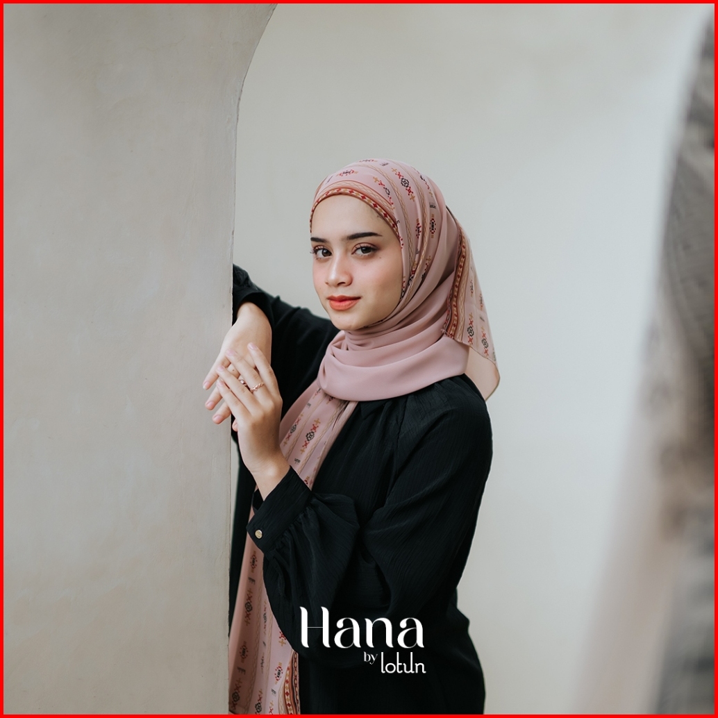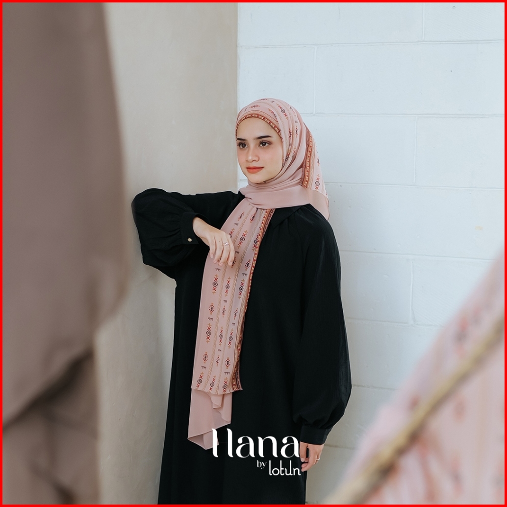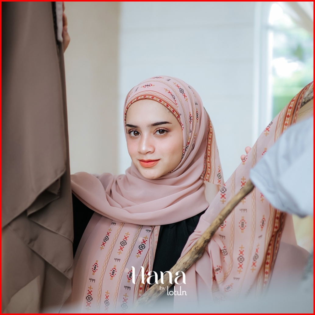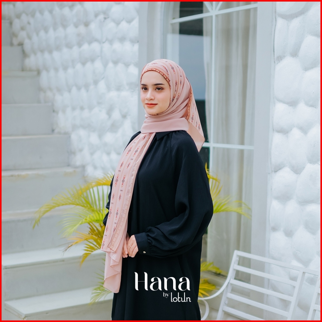 Lotun Hana Series - Hijab Pashmina Printing Motif Etnik Material Premium - Peach
