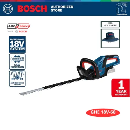 BOSCH Brushless Hedge Cutter / Pemotong Tanaman Baterai 18Volt GHE 18V-60 (Unit Only) - GHE 18V-60 ONLY