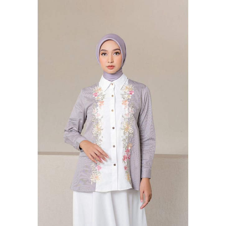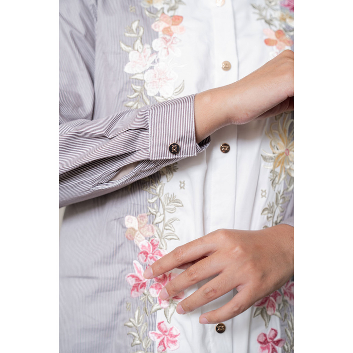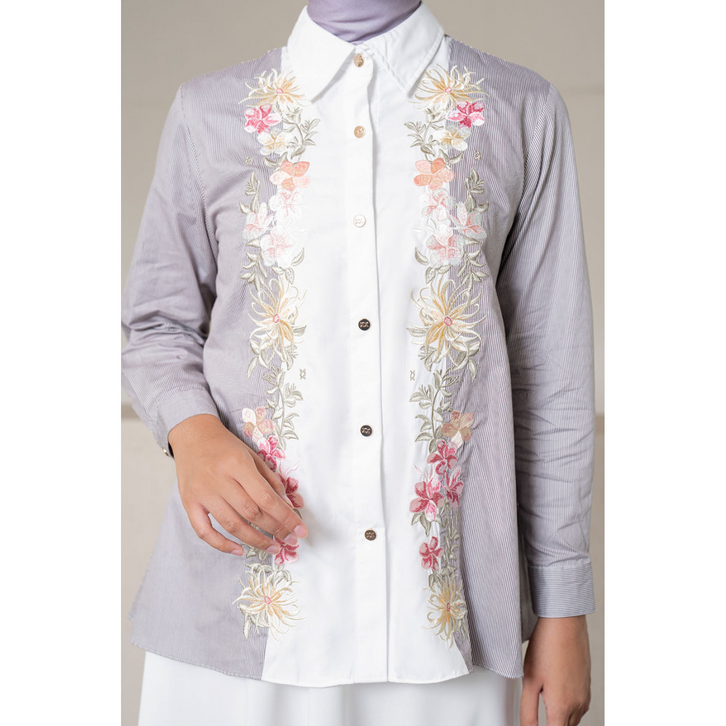 (TERMURAH)Klamby - Meira Stripe Shirt Vintage Khaki
