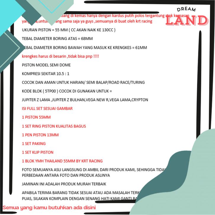 BLOK SEHER BORING BORE UP KRT JUPITER Z VEGA 55MM 55 MM