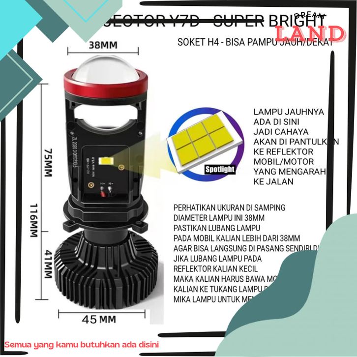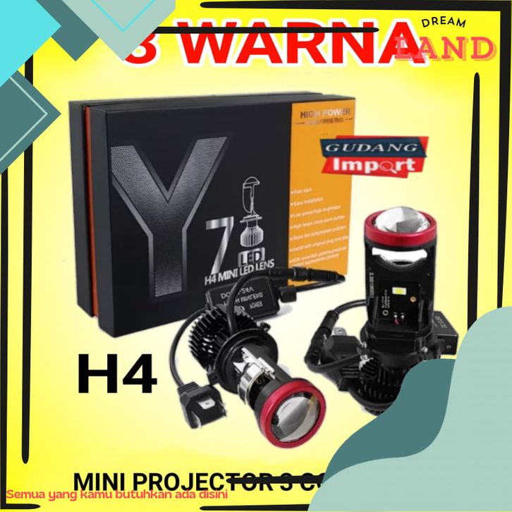 LAMPU LED MOBIL MOTOR H4 MINI PROJECTOR PROJIE Y7S 3 WARNA
