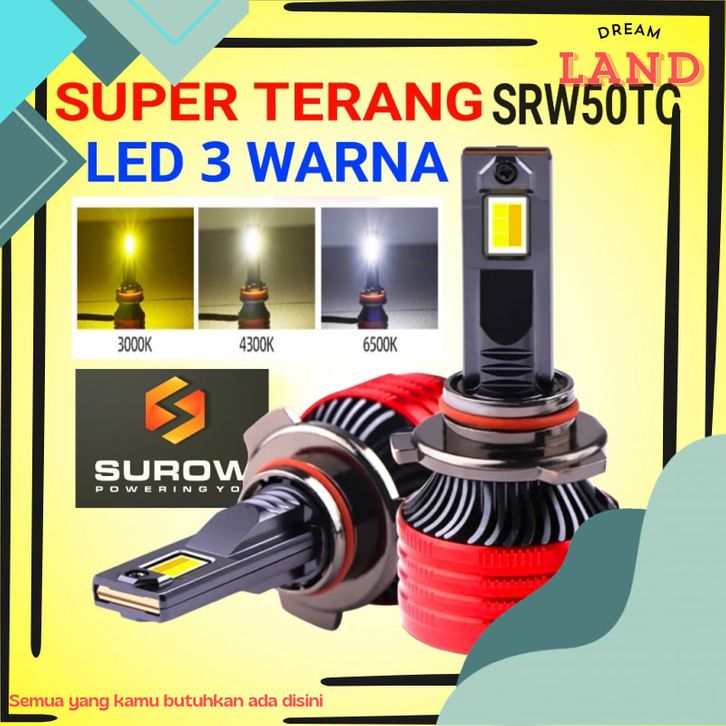LAMPU LED MOBIL 3 WARNA SUROW SRW50TC H4 H11 H1 HB3 HB4 9005 9006 H7