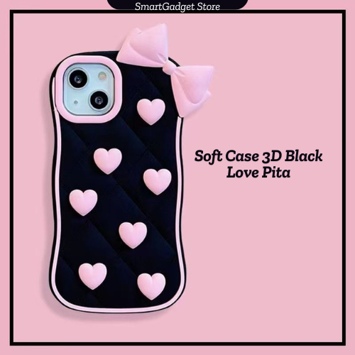 SOFT CASE 3D BLACK LOVE PITA UNTUK IP X XR XS 11 12 13 14 MOTIF AESTHETIC TERBARU BEST SELLER KEKINIAN