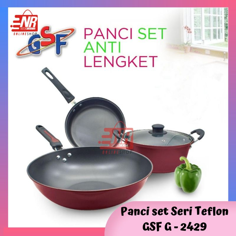 PANCI SET GSF 2529 TEFLON ANTI LENGKET - PANCI WAJAN PENGGORENGAN TEFLON ENAMEL COOKWARE SET 8PCS