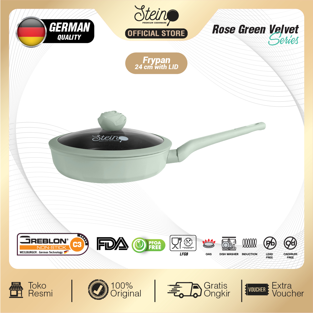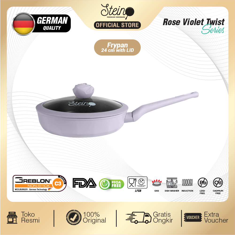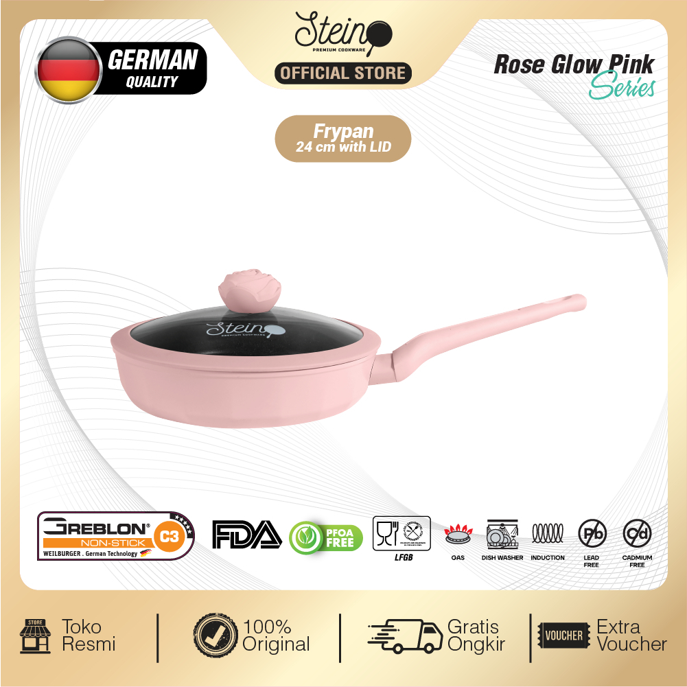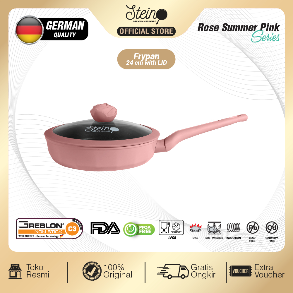 Wajan Anti Lengket Stein Cookware Rose Frypan 24cm Granite German Coating Original Official Store