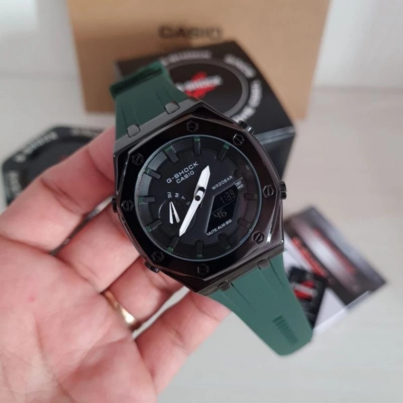 JAM TANGAN PRIA G-SHOCK GM-2100 BLACK GREEN RUBBER FREE ONGKIR - FREE BOX