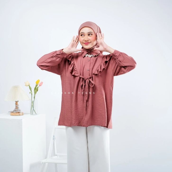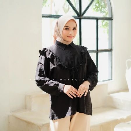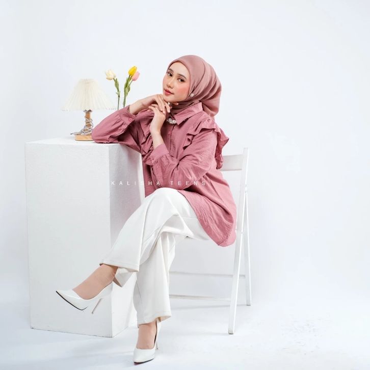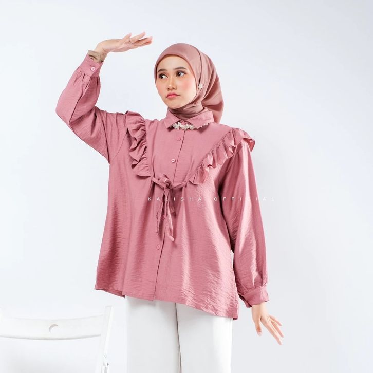 Alenza Blouse Baju Atasan Wanita Terbaru Atasan Muslim Wanita Polo Linen Busui Wudhu Friendly By Kalishaofficial