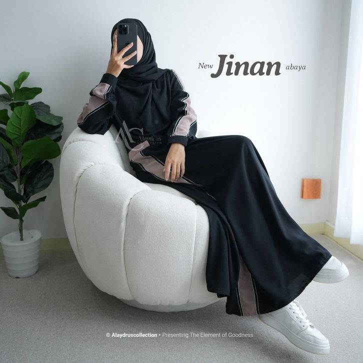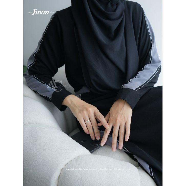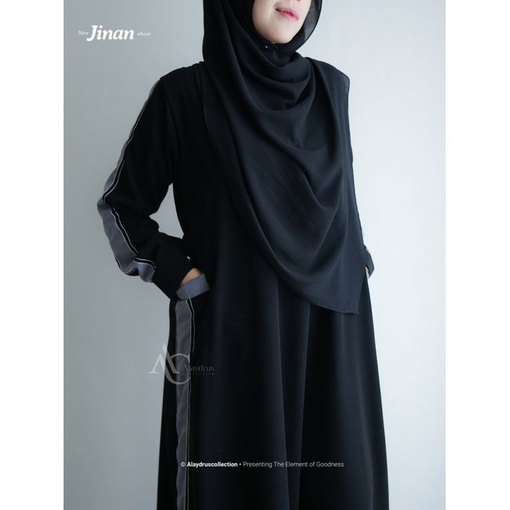 Alaydrus Collection Jinan Abaya Hitam TAlaydrus Collection Jinurkey Gamis Syari Muslimah Bahan Jetblack Hitam Dress Saku