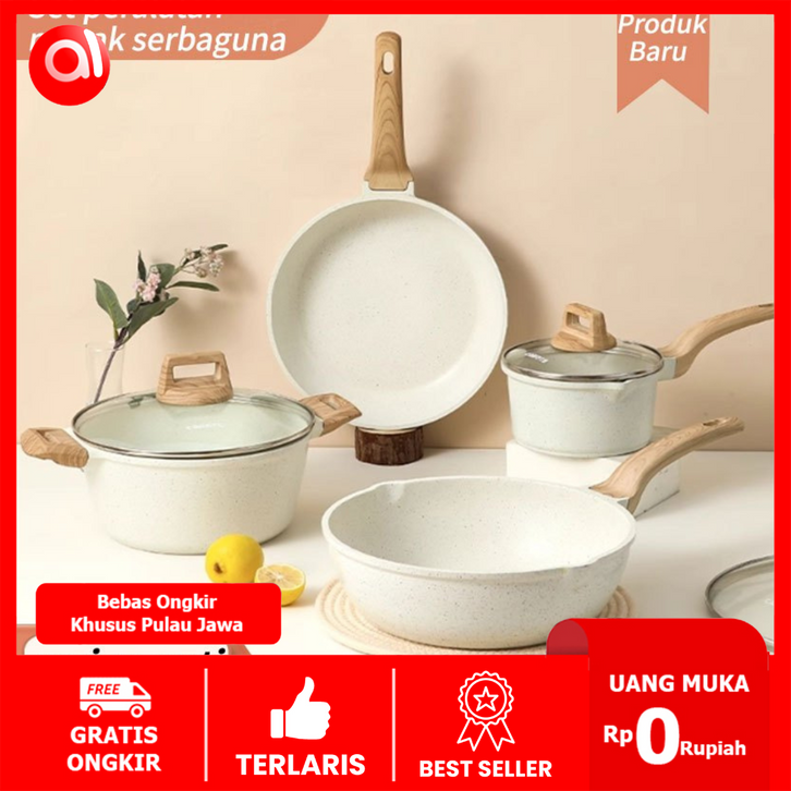 Granit Putih Antilengket Peralatan Masak Dapur Wajan Rumah Tangga Premium Set 4 Pcs Wajan Panci Jumbo Anti Lengket