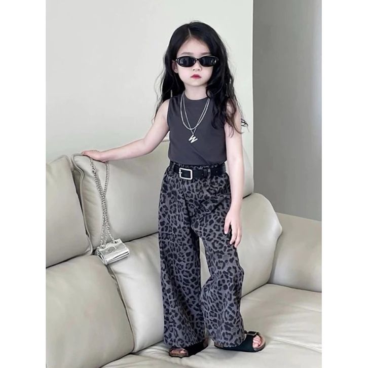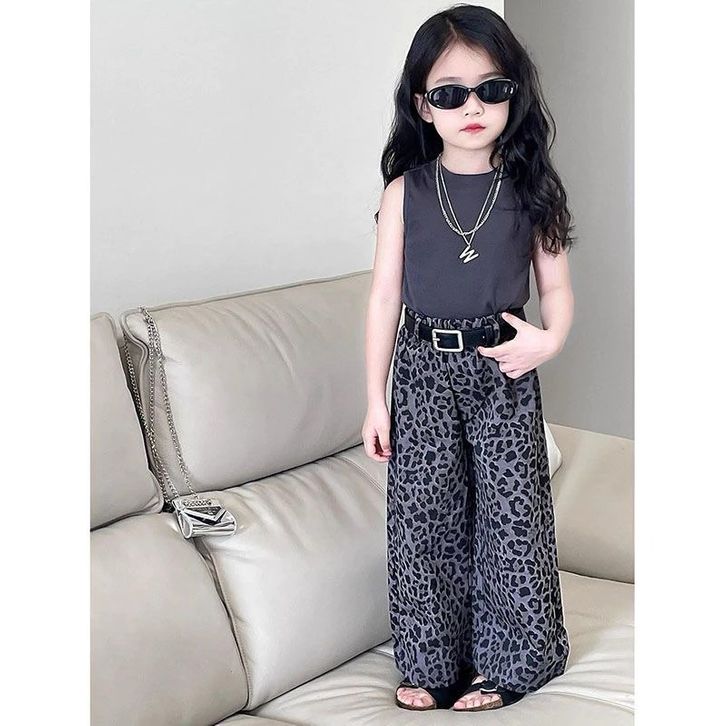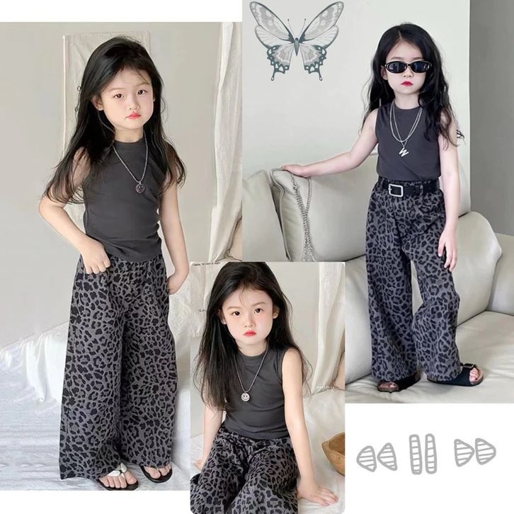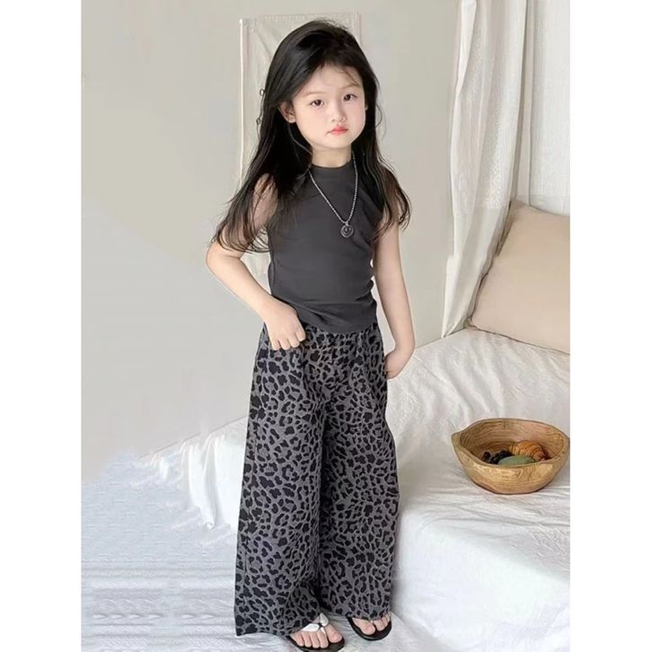 Setelan Anak Perempuan 2–8 Tahun Tanktop Kulot Leopard Baju Anak Perempuan Korean Style Kekinian Modis Lucu