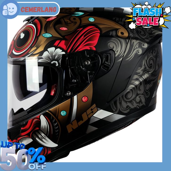 Helm Njs NJS ZX 1 BARONG Hitam Gloss/Doff Helm Full Face Helm Njs Full Face