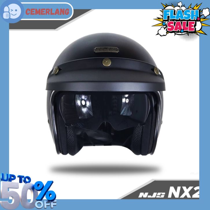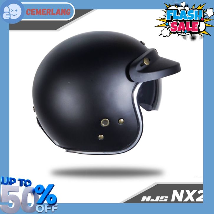Helm Njs BOSHELM Helm Retro NJS NX2 HITAM DOFF Helm Half Face SNI Helm Njs Full Face