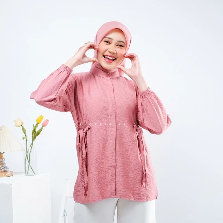 Aliza Blouse Baju Atasan Wanita Terbaru Kemeja Polo Linen Atasan Wanita Serut Lengan Panjang Blouse Remaja Dewasa Viral