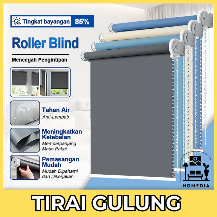 Gorden Mewah Elegan Roller Blind Gorden Jendela Gulung Semi Blackout85% Tirai Indoor/Ondoor Tahan Air, Ringan & Bernapas