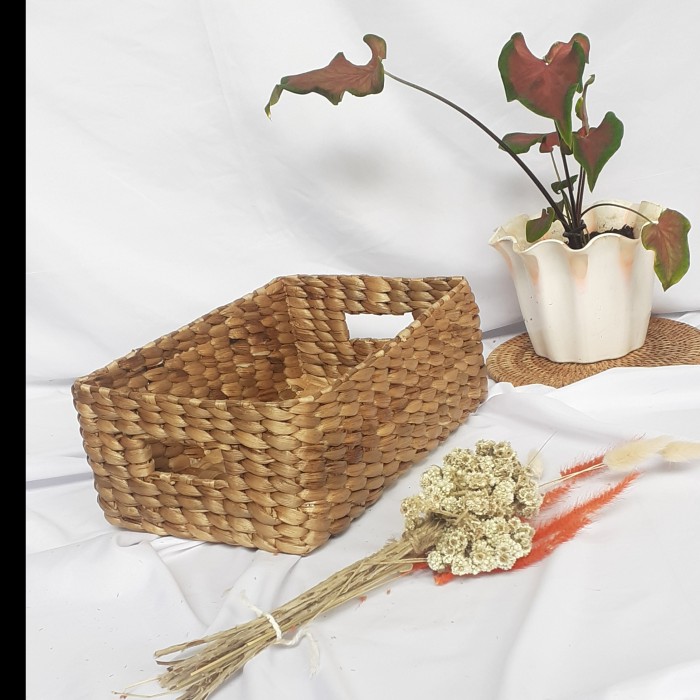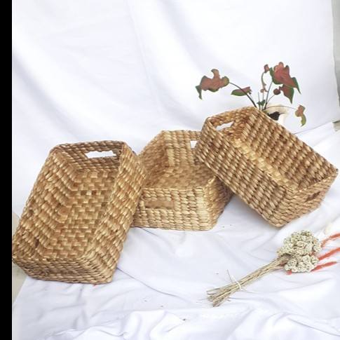 TRAY HAMPERS KERANJANG BOX ECENG ENCENG GONDOK ANYAMAN JOGJA AESTHETIC - BLT D22 TNP HND