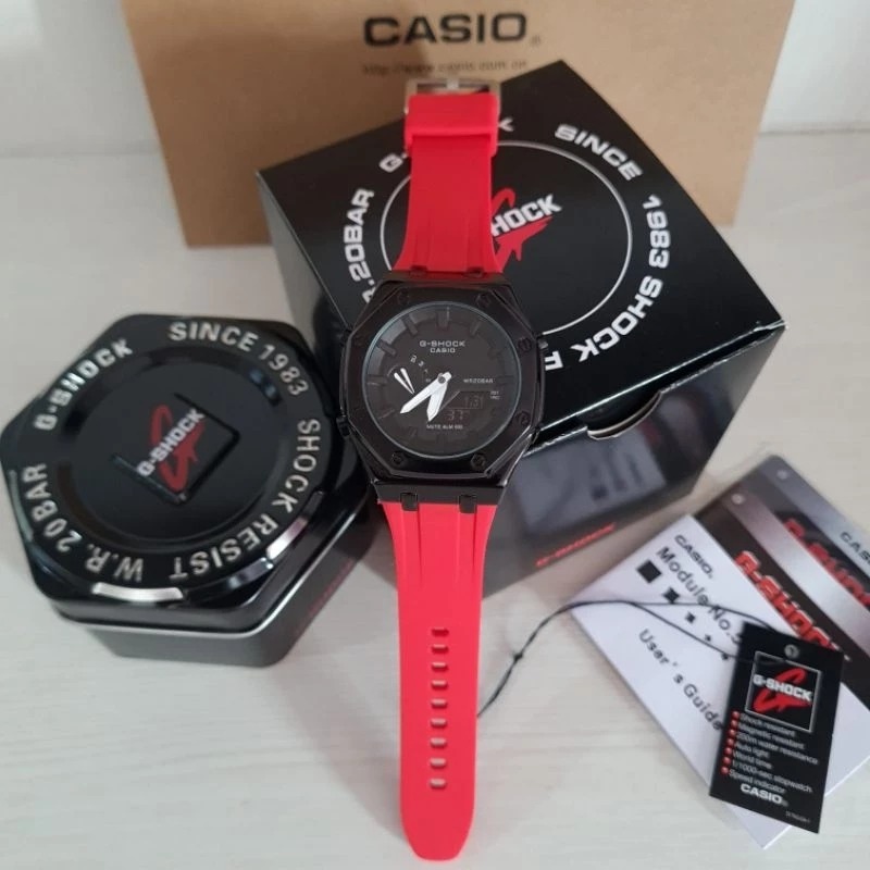 JAM TANGAN PRIA G-SHOCK GM-2100 BLACK RED RUBBER FREE ONGKIR - FREE BOX