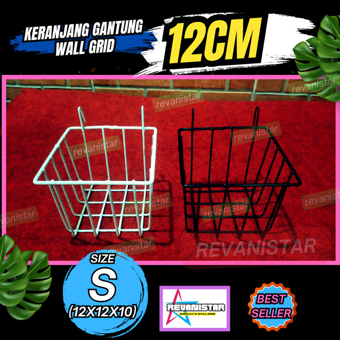KERANJANG GANTUNG BESAR KESI 37CM PENGAIT WALL GRID WIRE MESH RAM BESI - S12, HITAM
